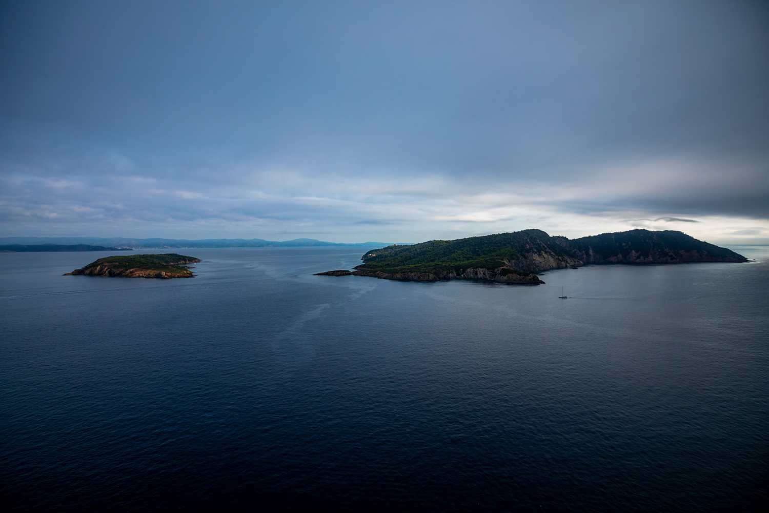 The island of Port-Cros (on the right) mainly consists of metamorphosed rocks. This dominance is reflected in the construction materials of the island's numerous military forts, even if a few porches are carved out of sandstone. Some small quantities of sandstone are indeed visible on the island, especially at the Pointe du Tuf. This term refers to an aeolian sandstone resulting from the fossilization of a dune dating from the end of the last Würm glaciation, around 10,000 years ago.