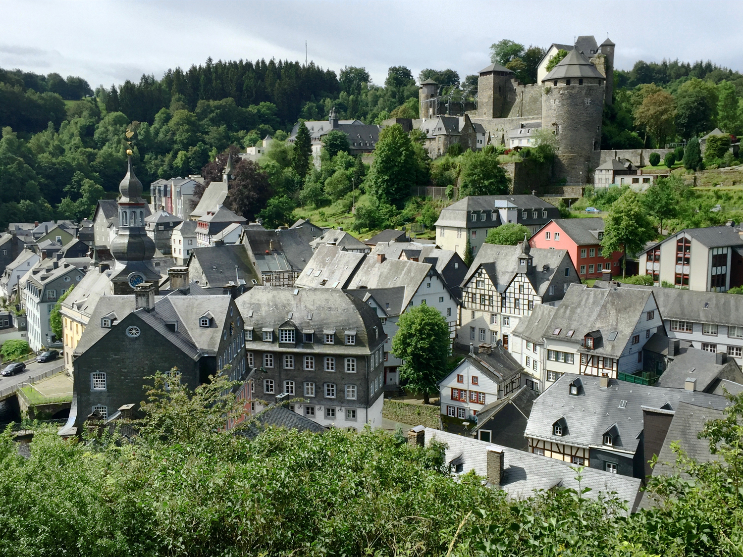 Nahe der belgischen Grenze liegt die nordrhein-westfälische Stadt Monschau. Im mittelalterlichen Zentrum sind viele Fachwerkhäuser in engen Gassen mit Kopfsteinpflaster gut erhalten. Über der Stadt thront die Burg Monschau. Sie ist ein gefragter Veranstaltungsort für Open-Air-Konzerte.