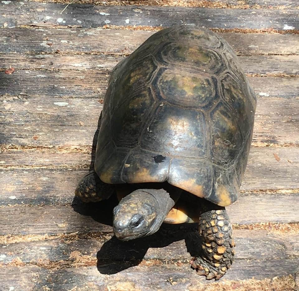 Las tortugas se identifican entre sí mediante el lenguaje corporal. La tortuga macho hace movimientos de la cabeza hacia otros machos, pero las hembras no hacen estos movimientos de la cabeza. Las tortugas machos también giran la cabeza hacia atrás y hacia adelante en un ritmo continuo como ritual de apareamiento. El apareamiento se produce durante todo el año en la tortuga de patas amarillas