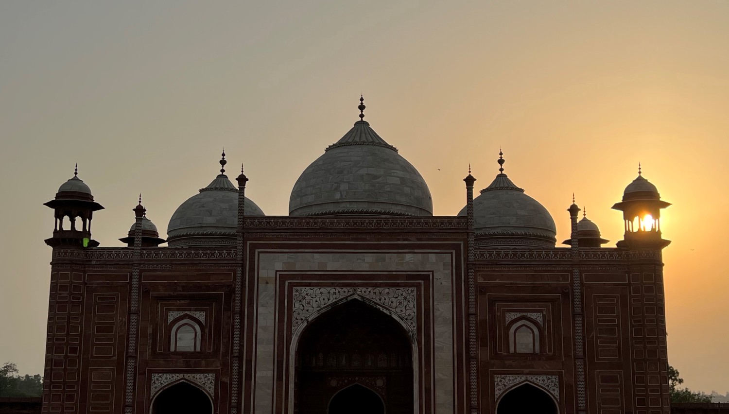The western building seen on this picture is a mosque. Its basic design of a long hall surmounted by three domes is similar to others built by Shah Jahan.