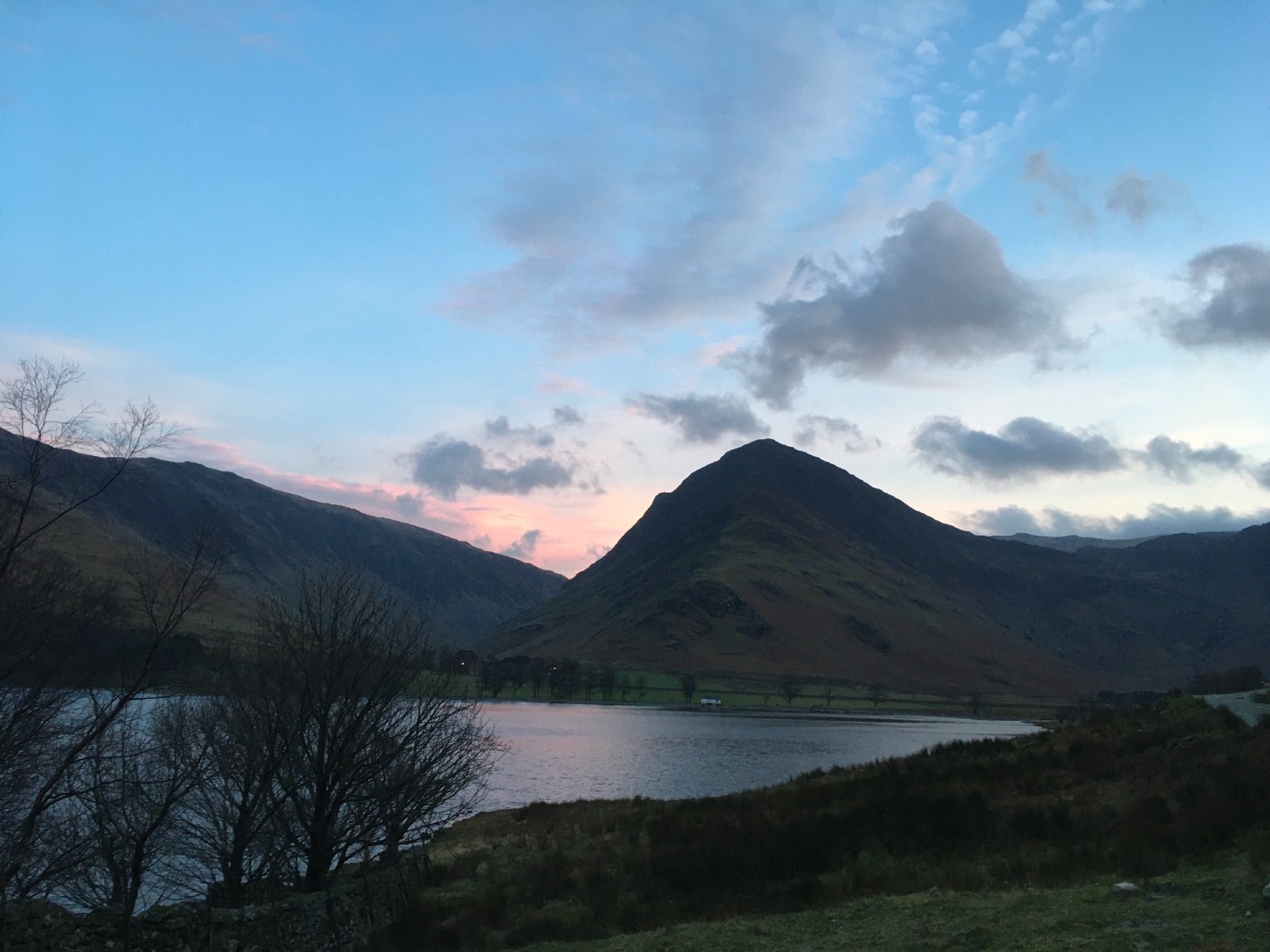 Mountain, lake and shoreline