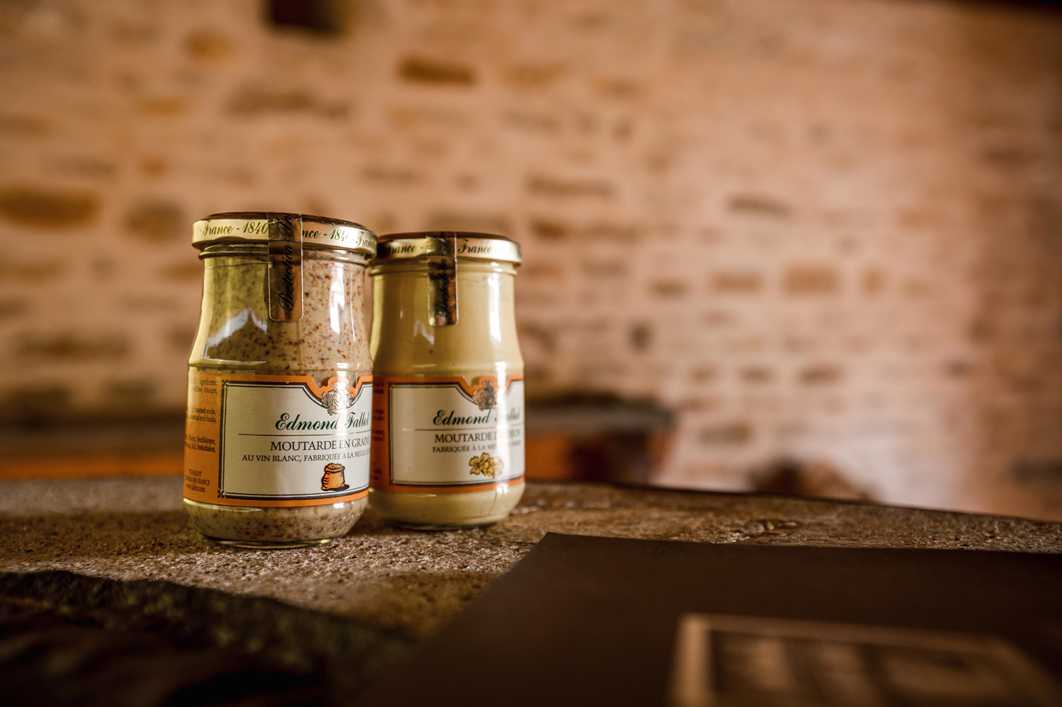 Grain mustard and Dijon mustard are two varieties of condiment mustard with different characteristics, although they are both prepared with mustard seeds. Developed in the 1980s, grain mustard - also called old-fashioned mustard - is paradoxically a more recent invention than the Dijon mustard created in the eponymous city by Auguste Poupon and Maurice Gray in the 18th century. Their texture and appearance differ inasmuch as the former is made from whole or lightly ground yellow and brown mustard seeds. Its texture is, therefore, coarser and its aspect is speckled with brown and yellow unlike the homogeneous and perfectly smooth matte yellow of Dijon mustard. Finally, in terms of taste, grain mustard is relatively milder than Dijon mustard as its seeds are not ground.