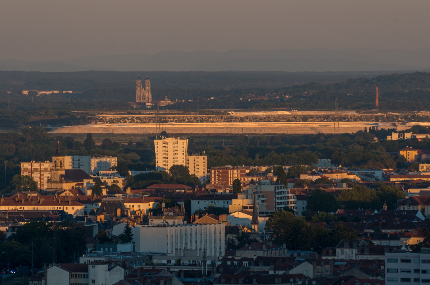 Vue depuis le Parc de la Cure d'Air. Au loin on apperçoit la basilique de Saint-Nicolas-de-Port.
