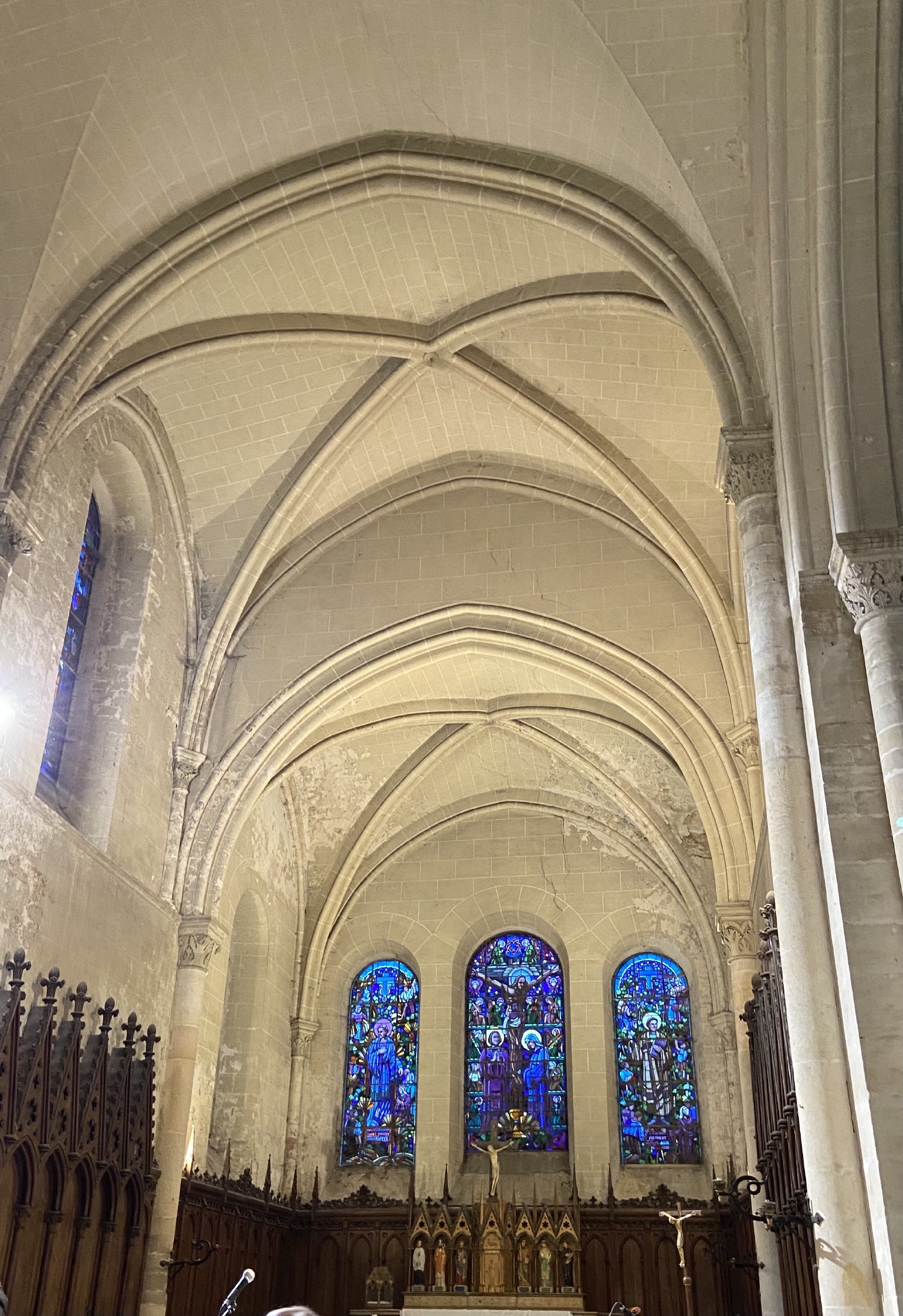 Vue du chœur avec son triplet de 3 baies plein cintre comportant de magnifiques vitraux