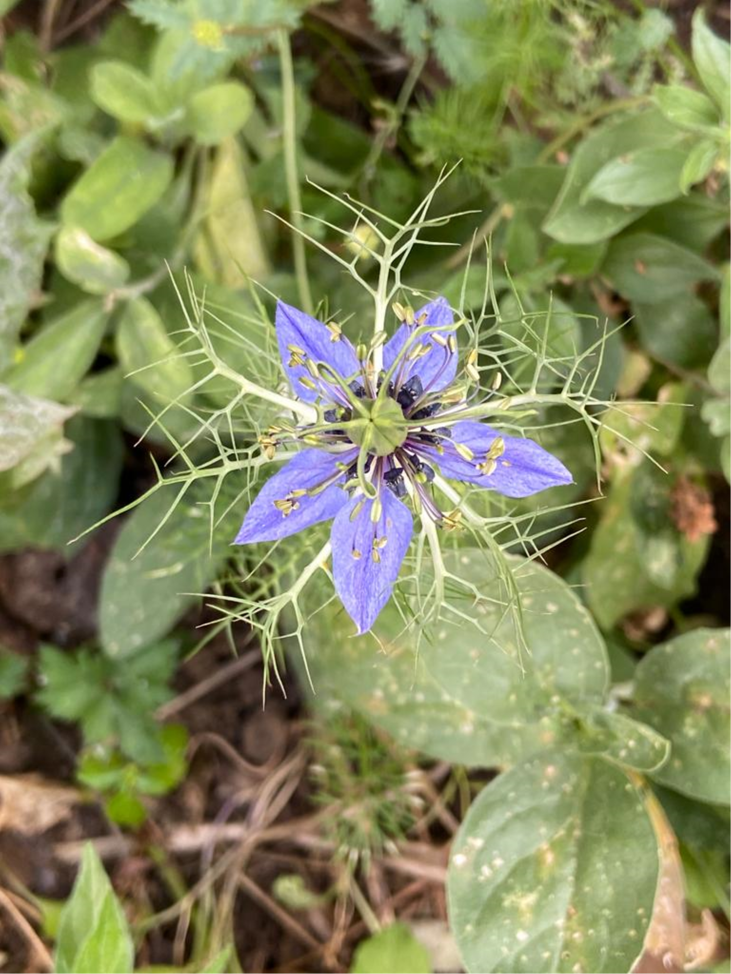 La Nigelle de Damas, également appelée Cheveux-de-Vénus ou Barbe-de-Capucin, est une plante herbacée de la famille des Ranunculacées. Sa floraison a lieu de mai à juillet. Les fleurs de couleur bleu pâle comportent 5 pétales.