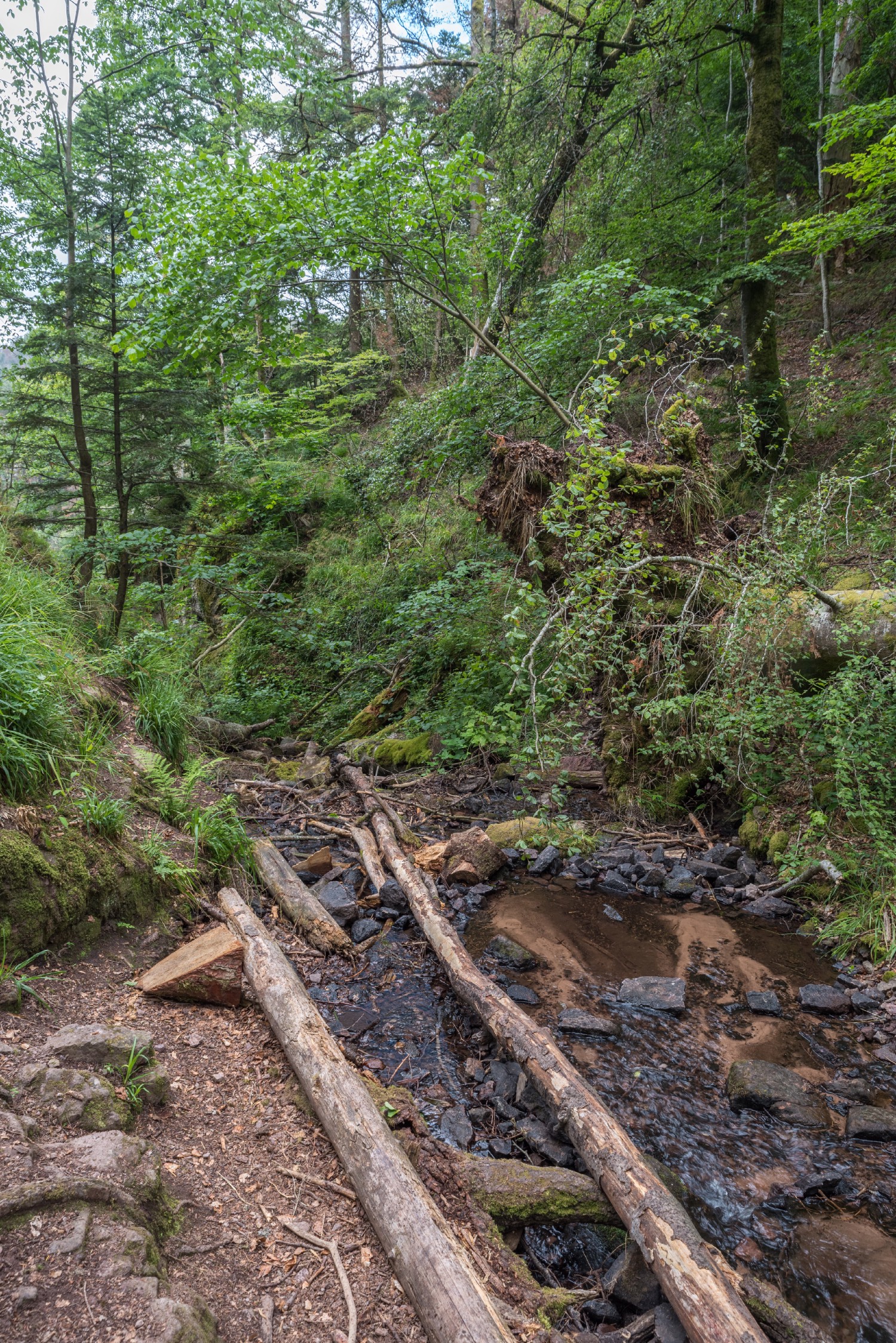 Le ruisseau alimentant la cascade du Nideck quelques métres avant de se précipiter dans le vide. Il est tellement insignifiant qu'il n'a pas de nom.