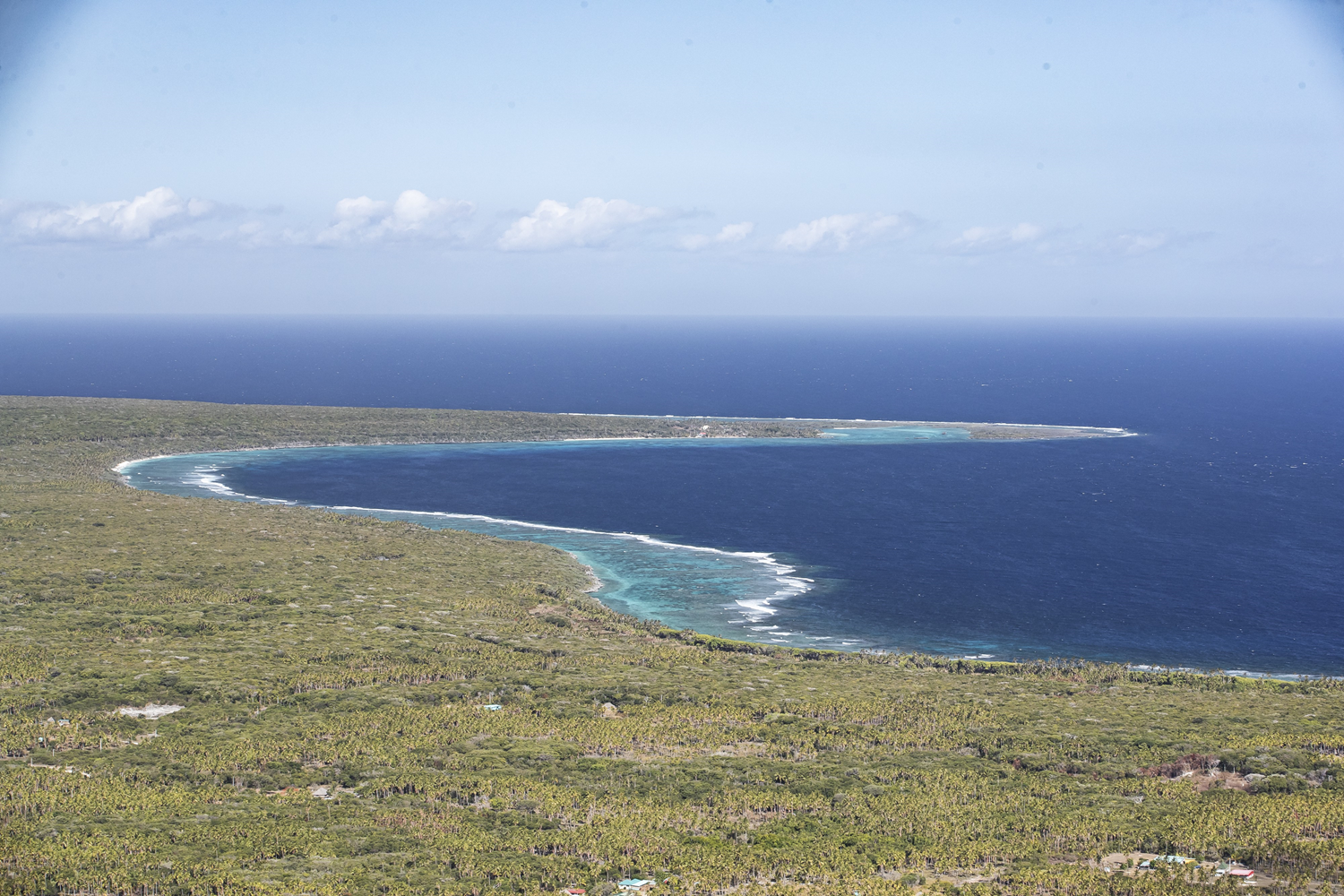 The northern part of Ouvéa is the least touristic. The road to Ognat, at the eastern end of the island and at the top right of the photo, crosses coconut groves and follows deserted shores. The white sand beaches framed by coral cliffs of Ohnyot Bay are hidden by the vegetation just like the round thatched huts of the traditional tribes. Not far from Ognat is Gossanah, the theater of the 1988 hostage-taking.