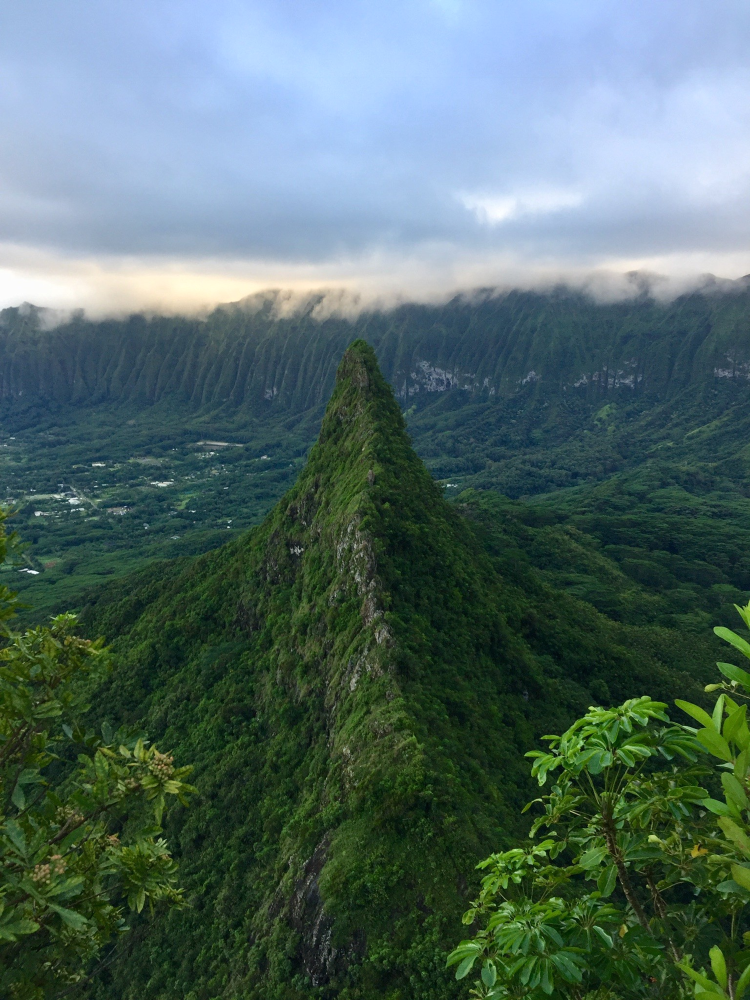 Pretty steep trail to the top of the Olomana peaks with the impressive Koolau Range standing behind.
