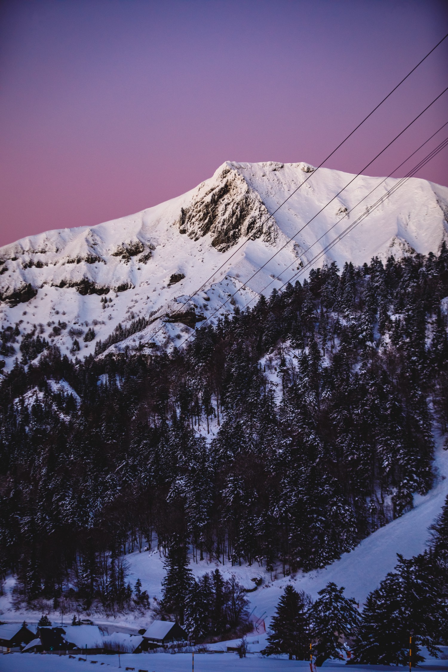 Perched at an altitude of 3,444 feet (1,050 metres) on the Northern slopes of Puy de Sancy (6,187 feet, 1,886 metres), the Mont-Dore ski resort is sometimes nicknamed ‘Little Chamonix’ because of the sharp peaks that dominate it. The spa town was one of the first classified ski resorts following the construction of its first cable car in 1936. Established in 1962, the current cable car – whose cables can be seen in this photo – can transport 45 people in 3 to 4 minutes, from its departure at an altitude of 4,347 feet (1,325 metres) to its arrival station 1,476 feet (450 metres) higher.