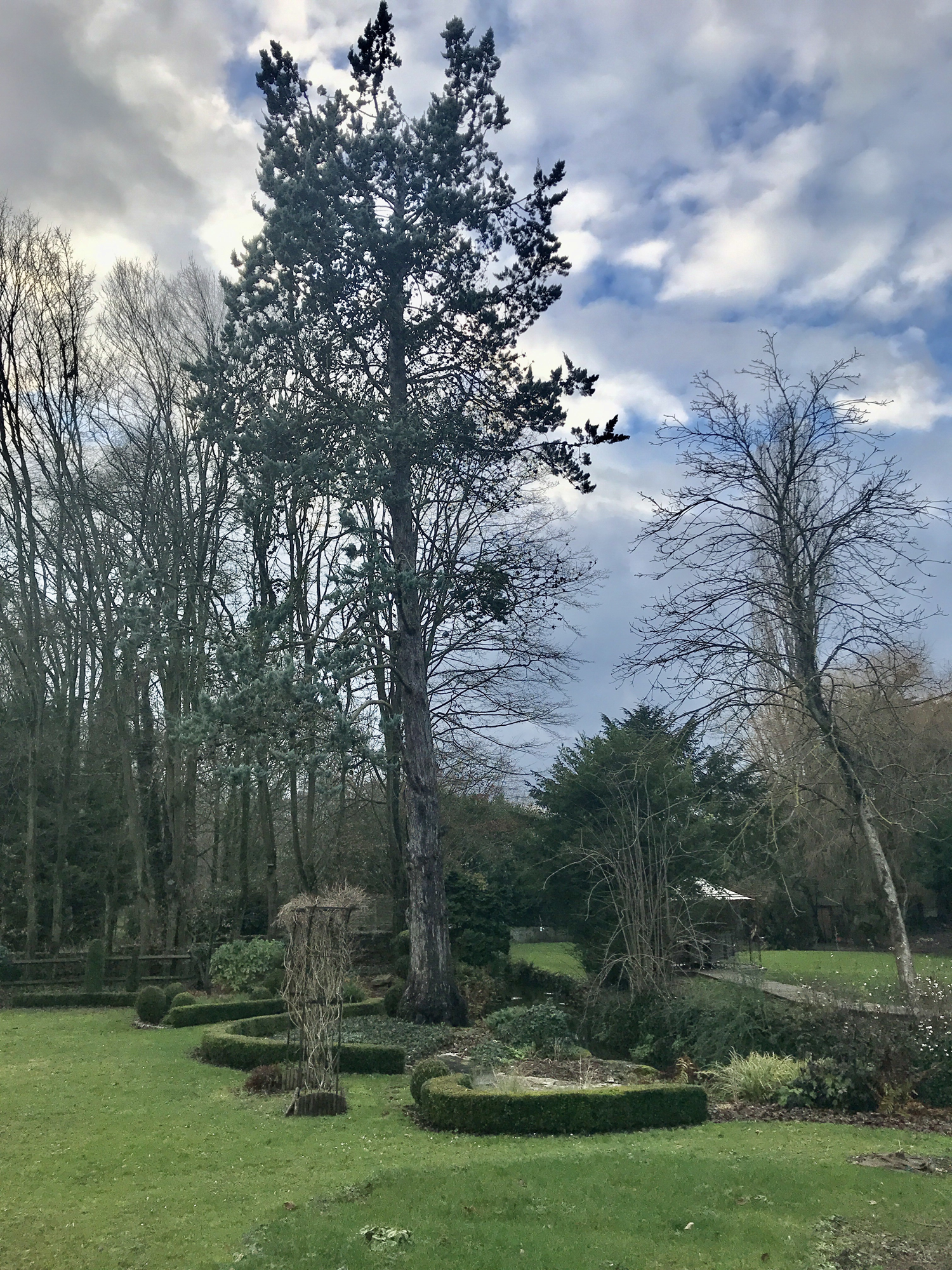 Parc paysager avec magnifique cèdre bleu