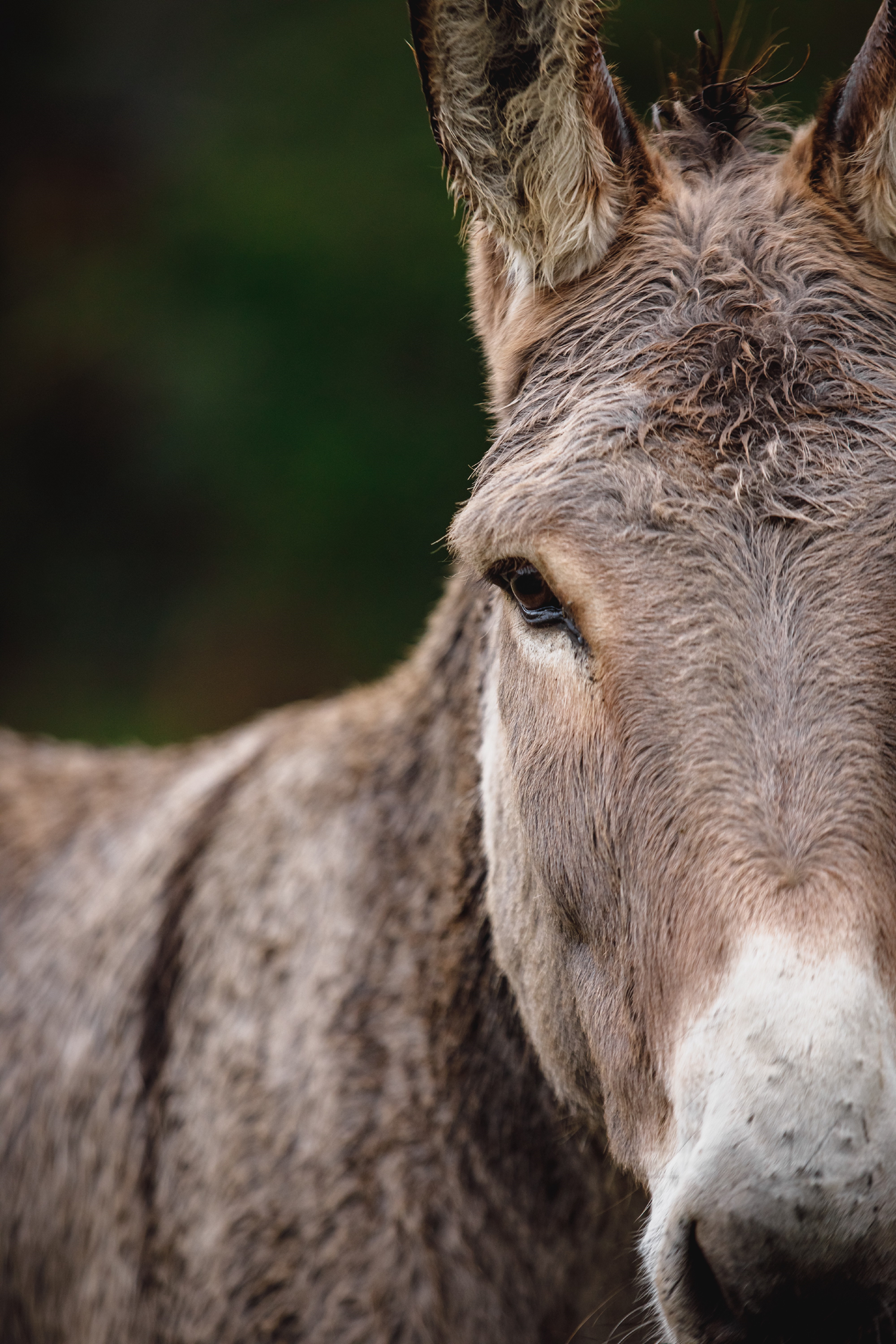 The Cotentin donkey (Equus asinus) breed was officially recognized by the French Ministry of Agriculture in August 1997. Currently, the donkey is more and more involved with leisure activities in the framework of green tourism. Given its docility and morphology, it is perfectly suited for hiking and harnessing. Its gentle and calm character also makes it a wonderful pet animal. At Domaine d’Esthine, the donkey sometimes also serves therapeutic purposes for people with disabilities.