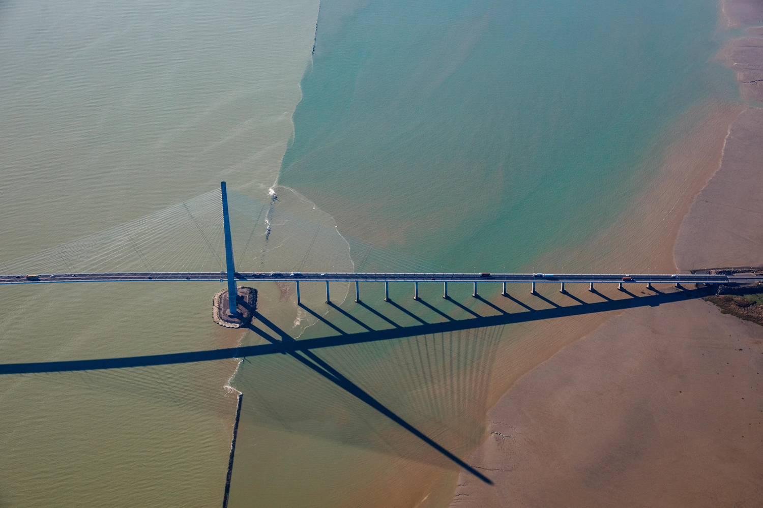 With nearly 27,710 acres (10,000 ha) of wetlands, the Seine estuary is one of the three largest in France, with Loire's and Gironde's. It consists of mudflats, wet meadows, and a foreshore made up of muddy and rocky sands. The Pont de Normandie spans it in the middle, at Sandouville, and connects Le Havre to Honfleur. The bridge, inaugurated in 1995, was designed by Michel Virlogeux, an engineer who received the Albert-Caquot prize in 2006 for the whole of his career.