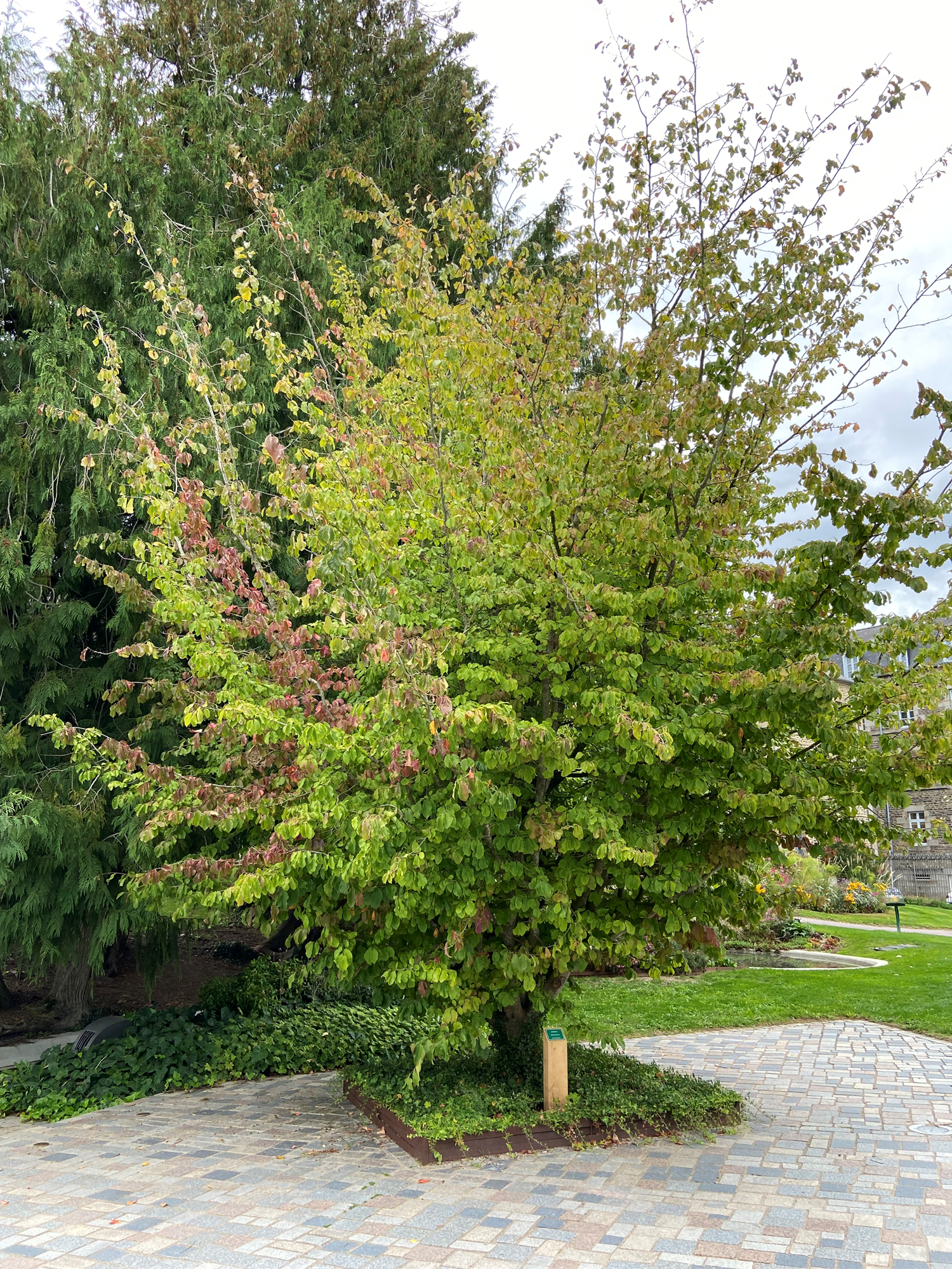Adulte, il mesure 5 à 10 mètres de haut. Ses fleurs sans pétales, à étamines rouges, apparaissent avant les feuilles à la fin de l’hiver.