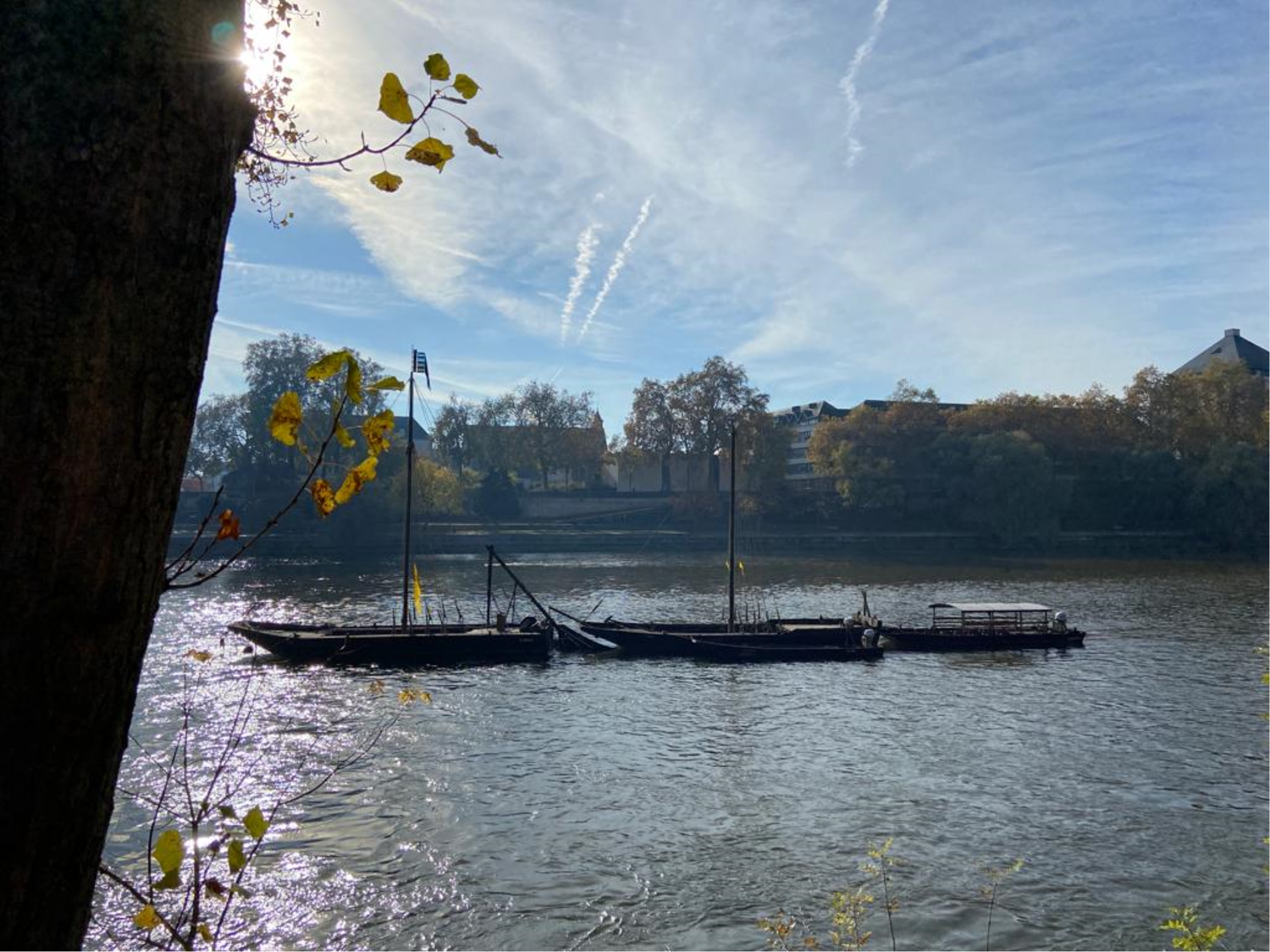 À la pointe de l’île Simon à Tours, les gabares (bateaux plats adaptés à la navigation fluviale) attendent les touristes