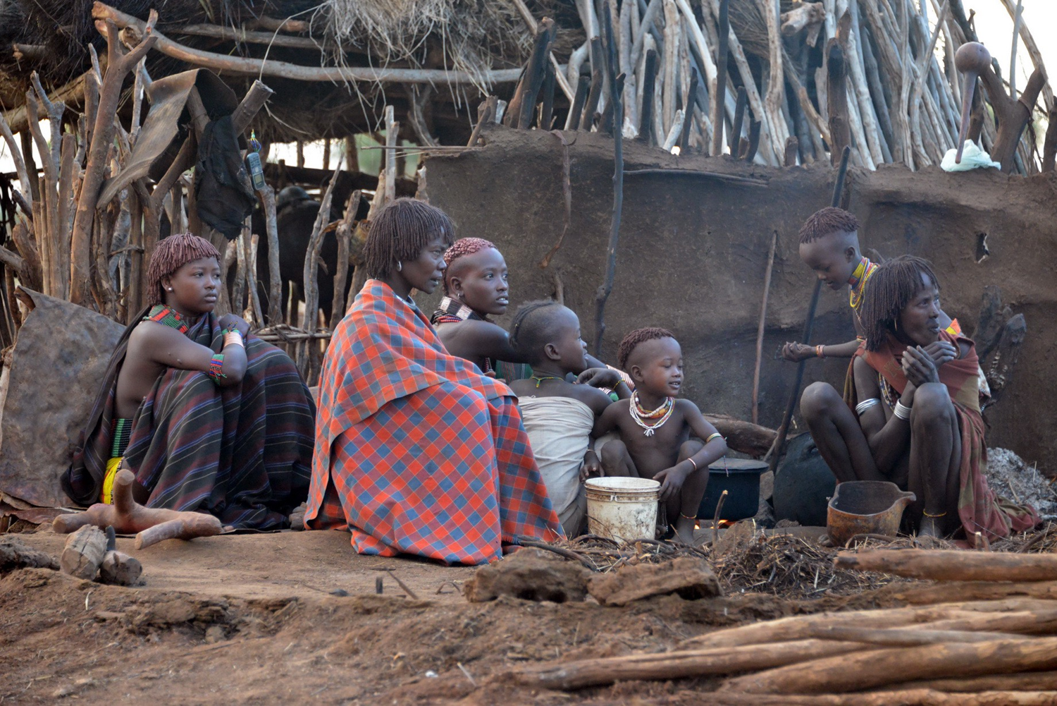 Petit déjeuner dans la tribu des Hamer, village de Tursi, Éthiopie