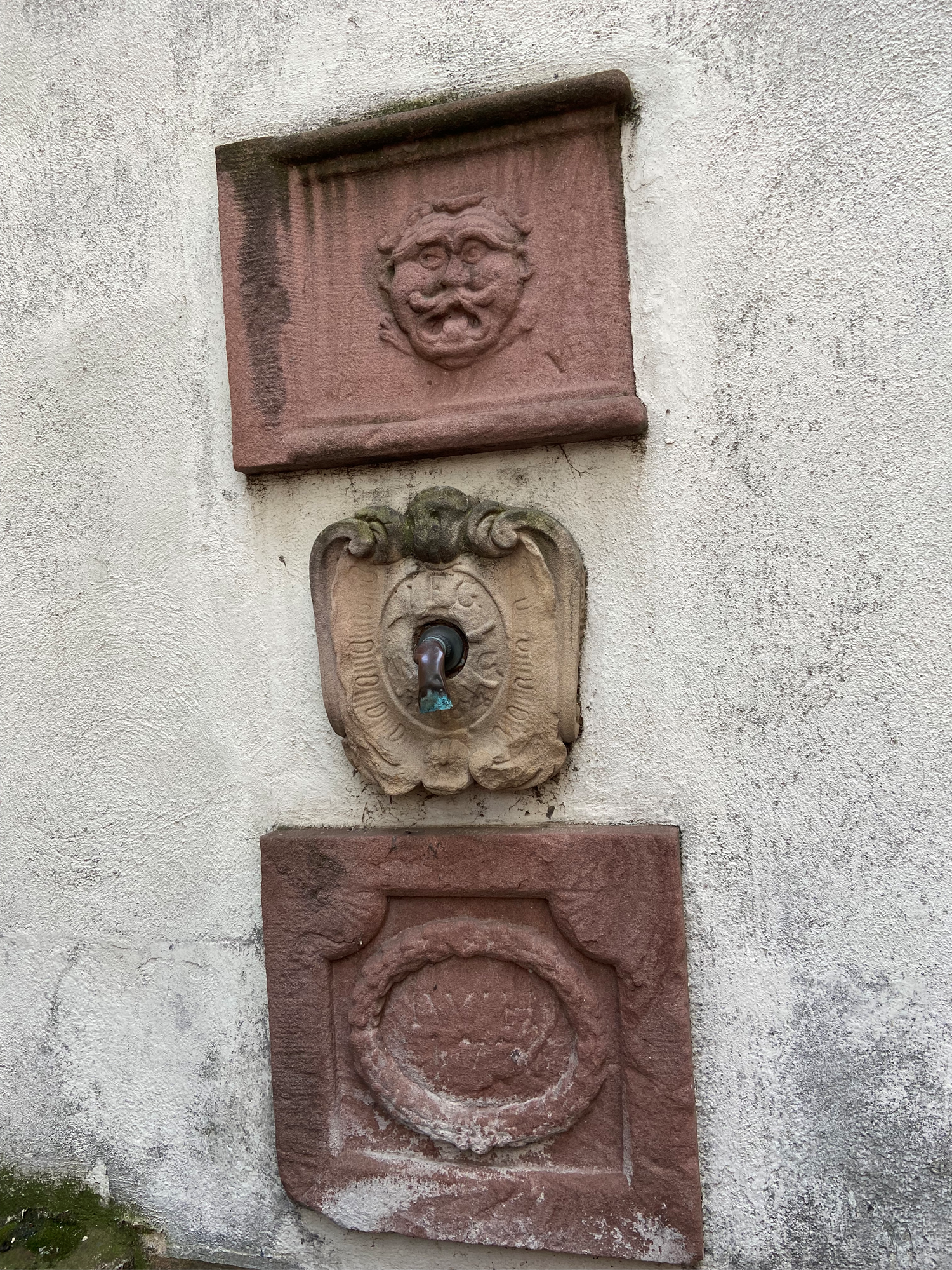 Ce puits, situé 2 rue du Maroquin, se trouve à l’angle de la place du Marché aux Cochons de Lait. Il est surmonté de 3 pierres : - celle du bas est ornée d’une couronne avec une date difficilement déchiffrable, - celle du milieu, de style rococo, est dotée d’un dispositif permettant la sortie de l’eau et on peut y lire des initiales (JFG) et une date (1754), - la pierre du haut est sculptée d’un visage masculin menaçant.