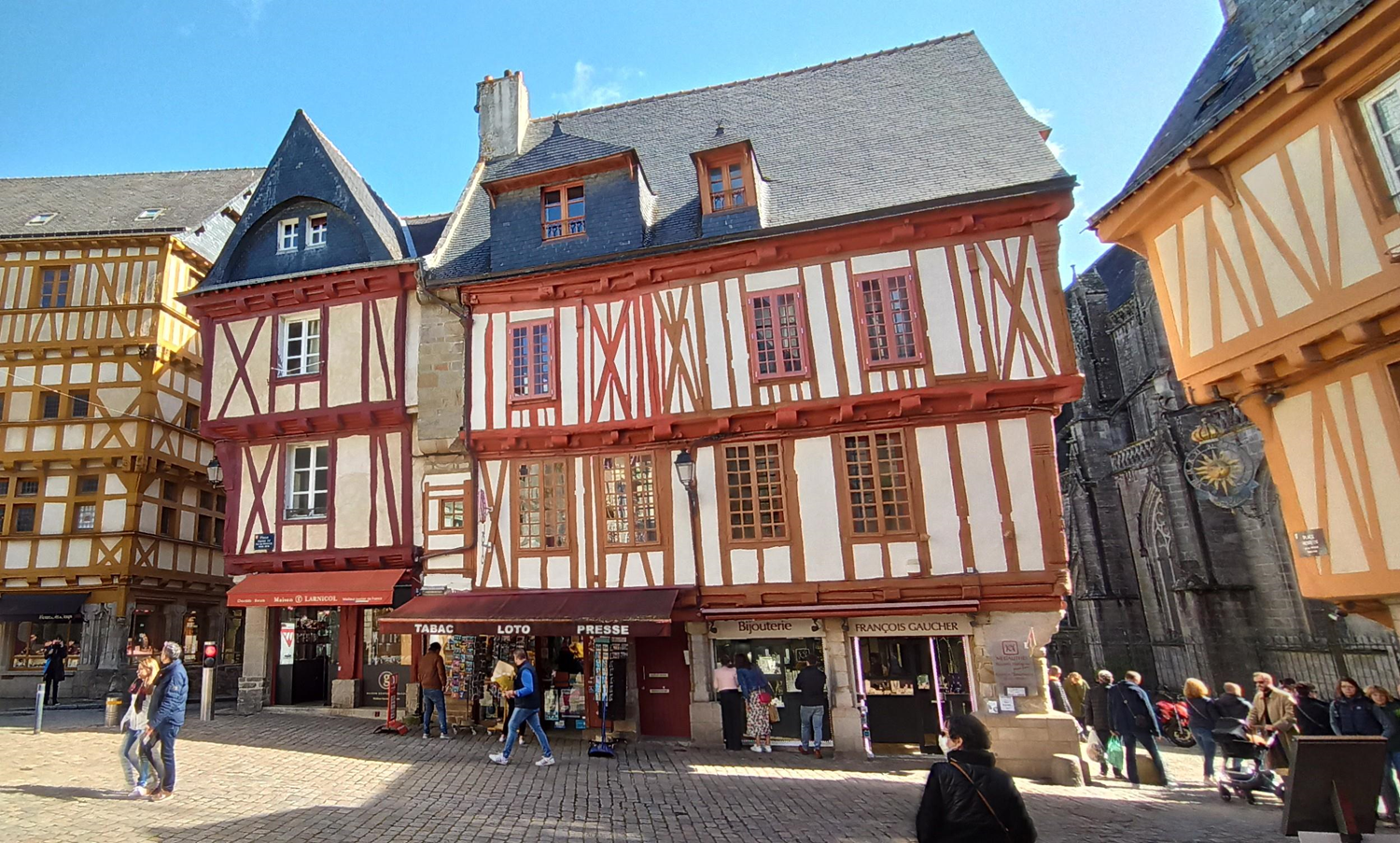 La place Henri IV de Vannes est célèbre pour ses sublimes maisons à colombages datant du XVème et XVIème siècle. A elle seule, la petite cité du Morbihan compte pas moins de 170 maisons à pan de bois. Des bicoques colorées au charme fou qui se concentrent autour de la place et dans les venelles pavées de la vieille ville. Populaire et animée, la place Henri IV est le point de départ idéal pour explorer Vannes tout en découvrant son histoire.