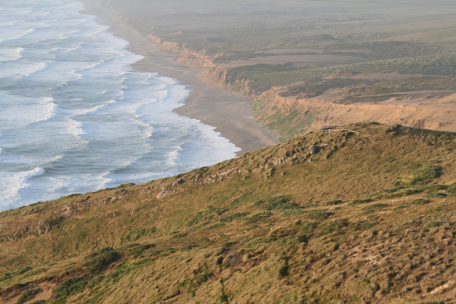 Les vagues puissantes viennent s’échouer sur cette côte.