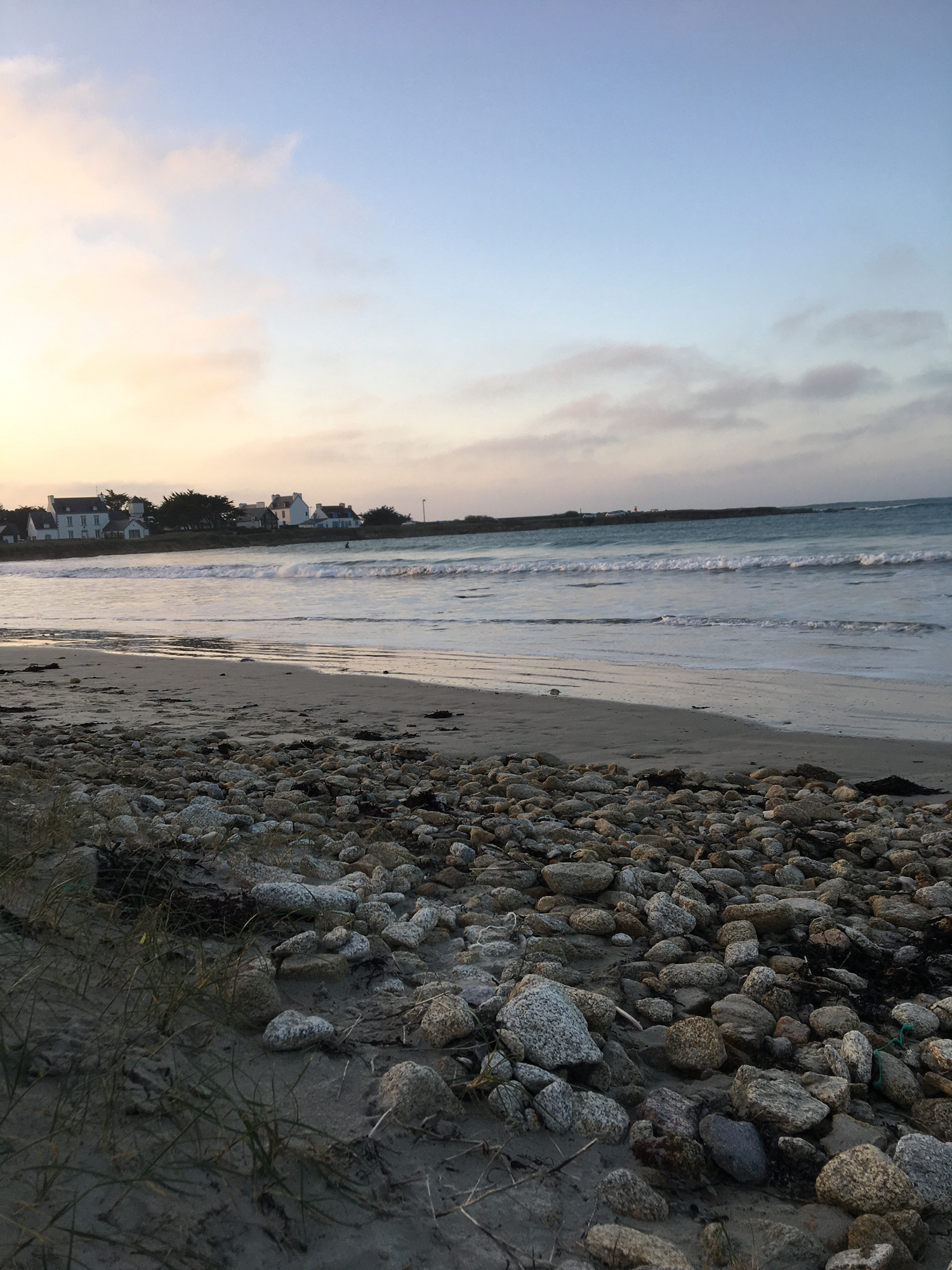 À Saint-Guénolé, 2 km de sable fin, exposée nord-ouest. On y trouve des sportifs qui pratiquent le surf, le stand-up paddle et la planche à voile.