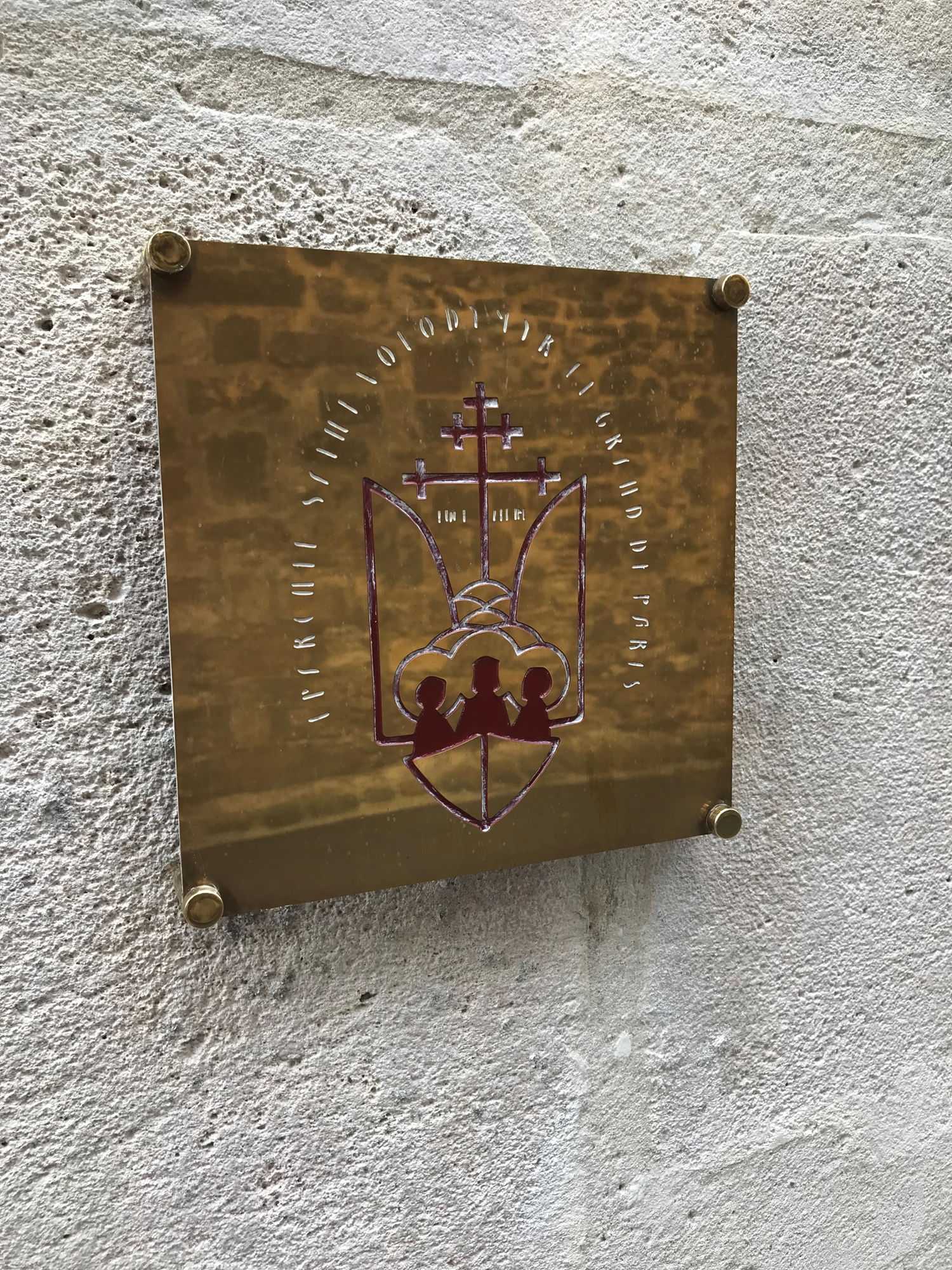 Plaque , en cuivre , du Centre culturel ukrainien d’ Anne de Kiev
