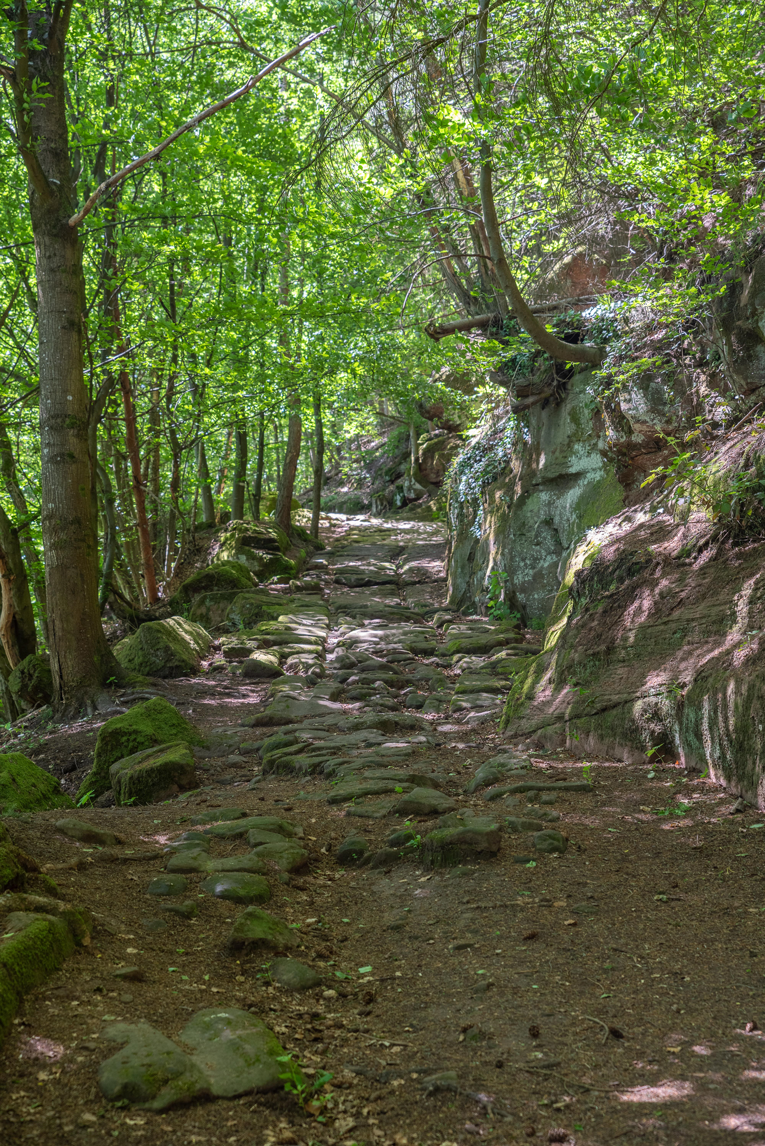 La voie romaine avec une pente de 23% de moyenne et un passage à plus de 30%.