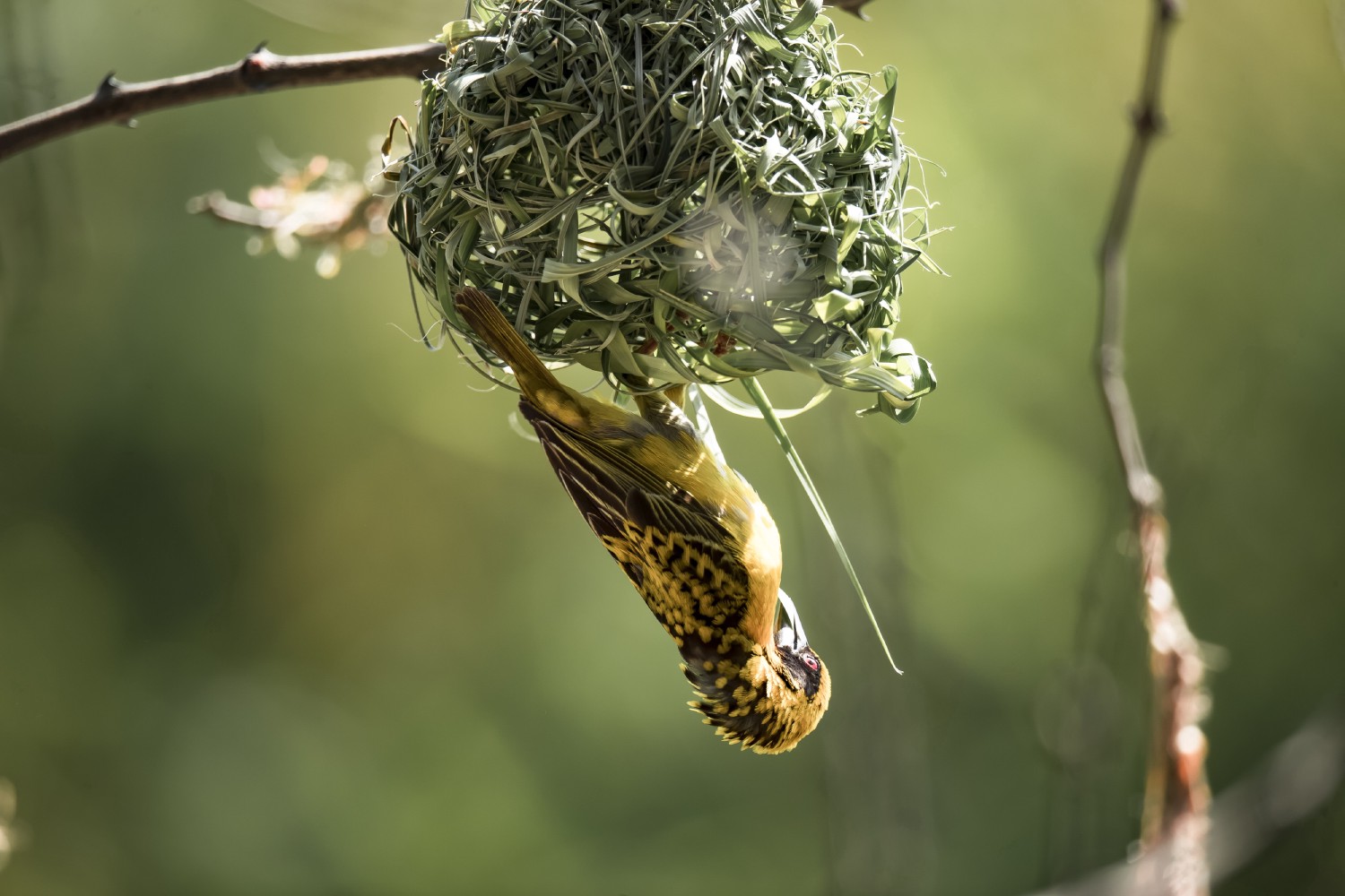 The feathers of the weaver undergo two annual molts replacing and successively renewing all the feathers. Brilliant after molting, the feathers gradually fade until the next molt.