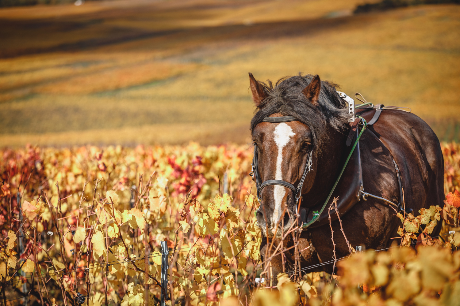 Since 2010, Benoît Marguet has chosen to work the soil of his vineyards using only a draught horse, in order to improve the well-being of the land. The horse is a unique link between the elements of the terroir: mineral (chalk), plant (vine and endemic flora) and animal (fauna and human). Although slower than a tractor, the horse is beneficial for the aeration of the soil. Maison Marguet works its wine by gravity and the individual fermentation of the ‘lieux-dits’ is carried out in oak tuns and barrels with practically no use of sulfites.