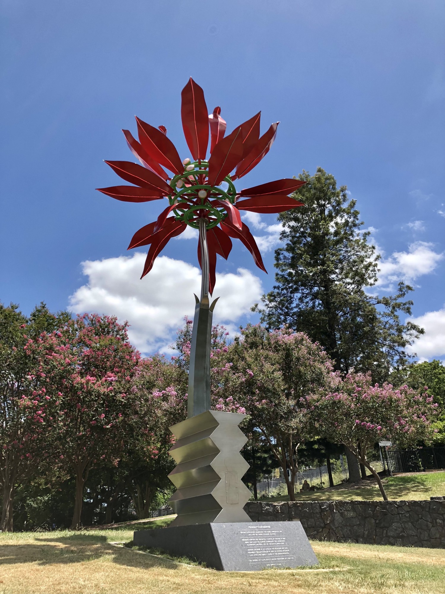 Arching skyward in an aspiring and uplifting way like Fireworks, the Poinsettia Riverfire Monument aims to inspire optimism and lotus-like evoke a sense of the transcendental. The tongues of flame bracts herald transition to a new era.