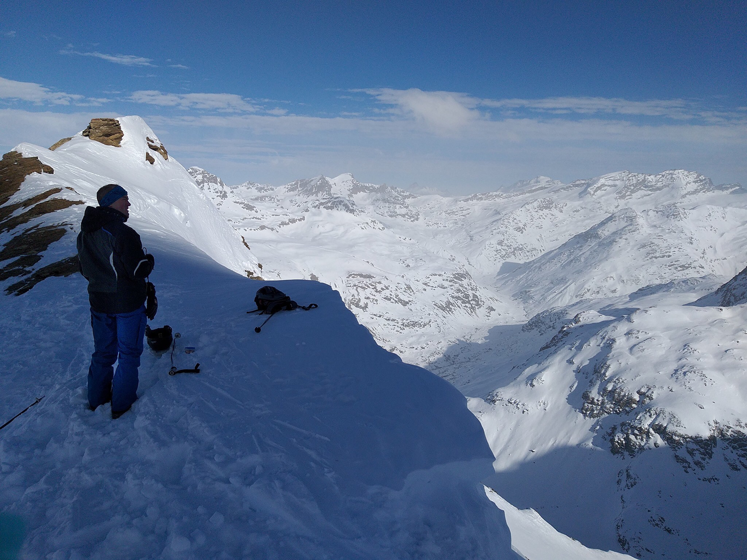 Au 2nd plan le Grand Paradis (4 061m), en contrebas la vallée de l’Arc et Bonneval-sur-Arc