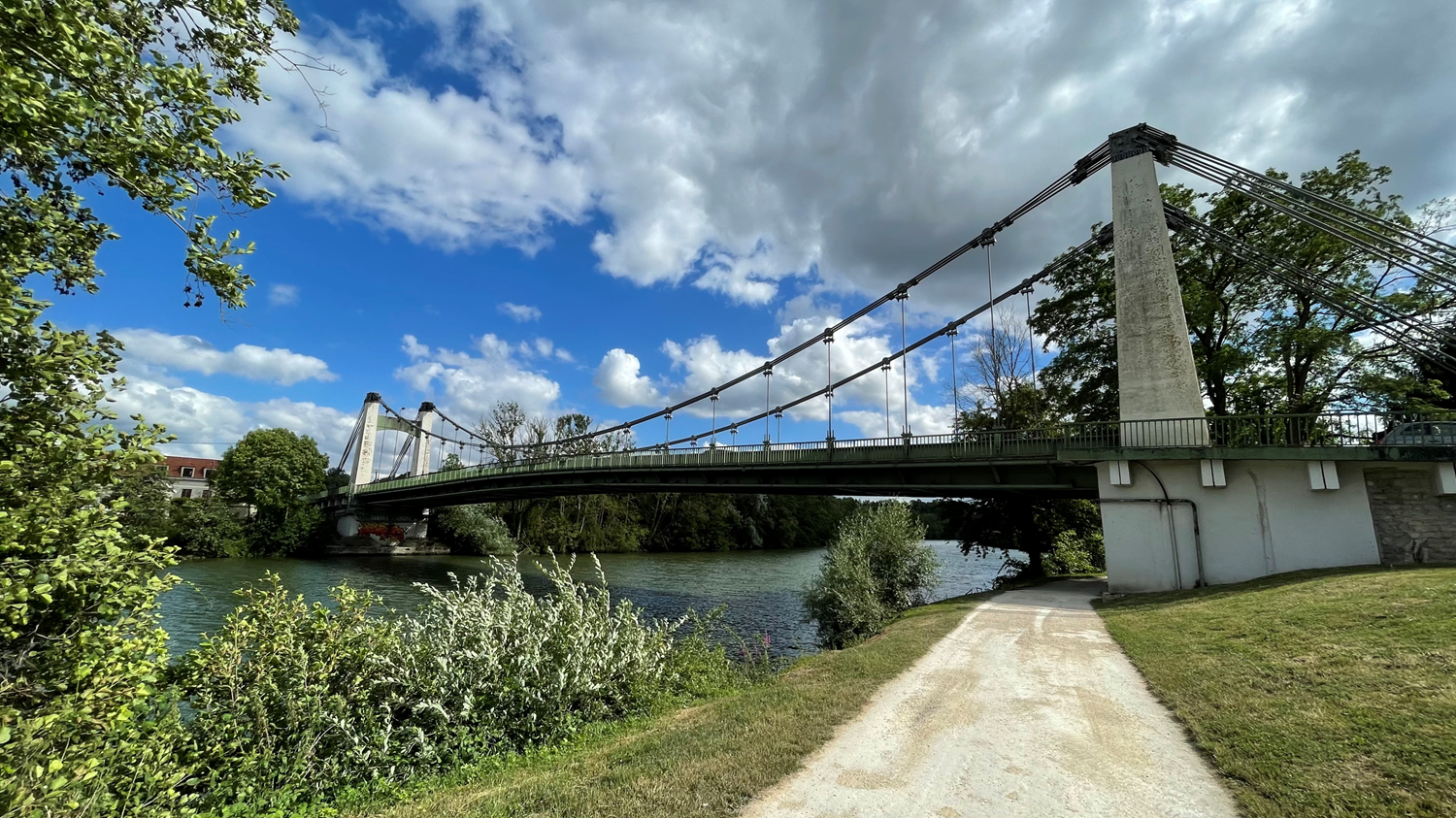 Ce pont routier et suspendu est fabriqué en acier et les pylônes sont , quand à eux , en béton armé. Il faudra attendre le 29 mai 1950 pour inaugurer le 2ème pont suspendu sur l’Oise à Saint-Leu -d’Ésserent , pont à suspension parabolique et à double sens de circulation sur lequel passe la D 44 et qui dépend du Département.