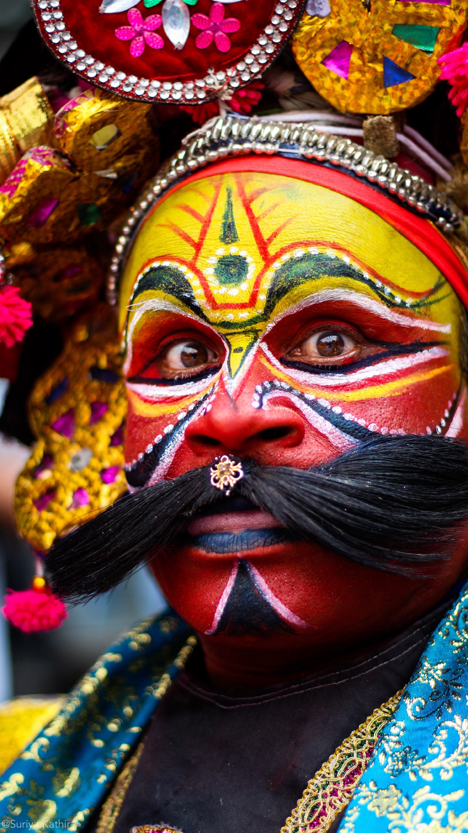 Portrait of Therukoothu artist. Therukoothu- ancient form of street play in south india. Artist disguised as the characters from the stories of Mahabharatha and ramayana.