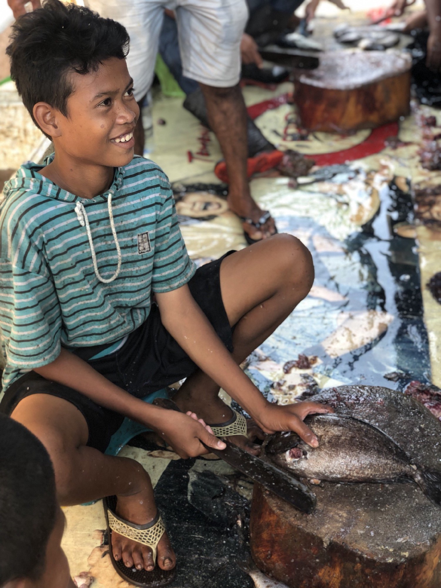 Préparation du poisson, marché aux poissons, Makassar, Sulawesi, Indonésie