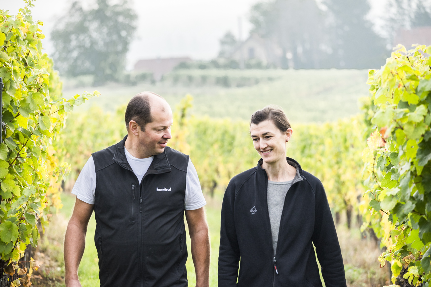 As the menu of his restaurant changes constantly, chef Eric Westermann is always looking for the best regional products. Mélanie Pfister represents the 8th generation of a family of Alsatian winegrowers, established in 1780. They both have in common a deep attachment to Alsace's soil. This similarity persuaded them to exchange their gastronomic ideas and agricultural know-how. They both endeavor to preserve the terroirs and to promote organic production.