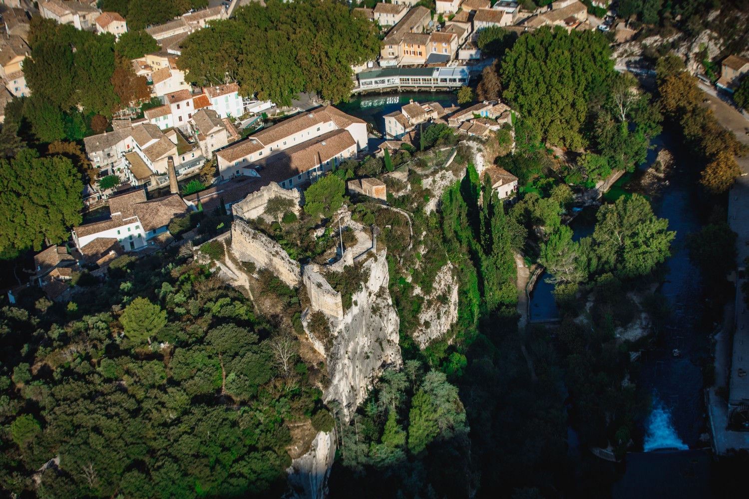 The ruins of the Vaucluse Castle or Castle of the Bishops of Cavaillon that dominate the Sorgue river bear witness to the rich history of Fontaine-de-Vaucluse. They date from the beginning of the 13th century, even though the castle was probably built at the same time as the church, around 1030. An act reporting its donation to the bishops of Cavaillon mentions it as early as 1034.