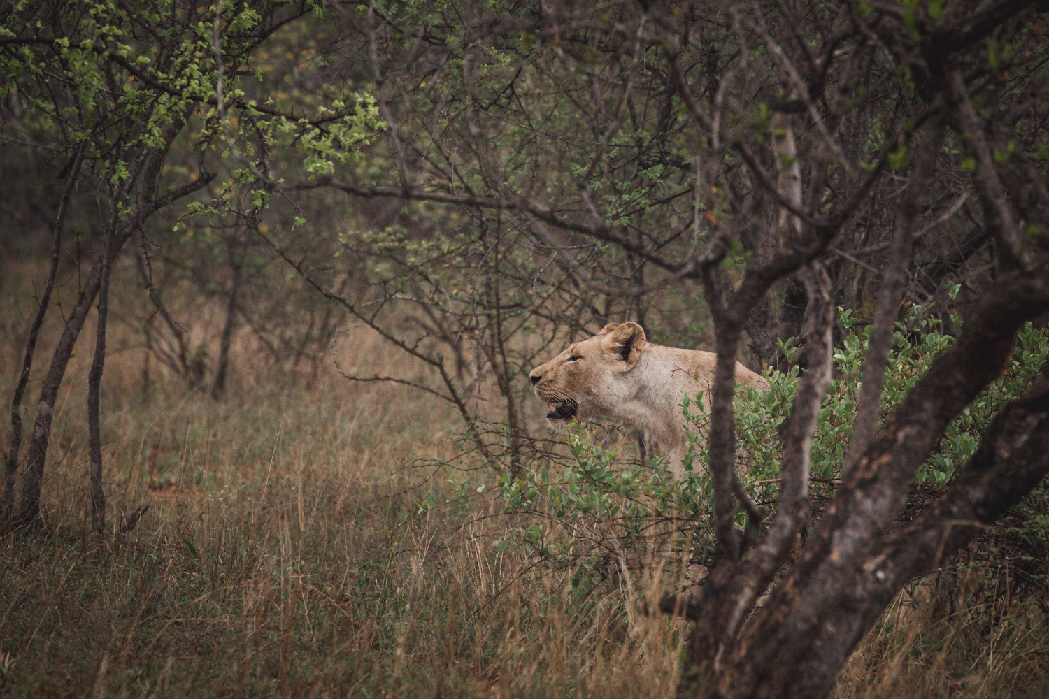 When a lioness that is part of a pride is alone to give birth, she usually goes away for some time. After a gestation of 4 months, the lioness hides away from the group to give birth to her cubs. Alone, she leaves the cubs unprotected against predators for up to 48 hours in order to hunt. She nurses them for the first weeks, hidden, until the cubs are strong enough to join the pride.