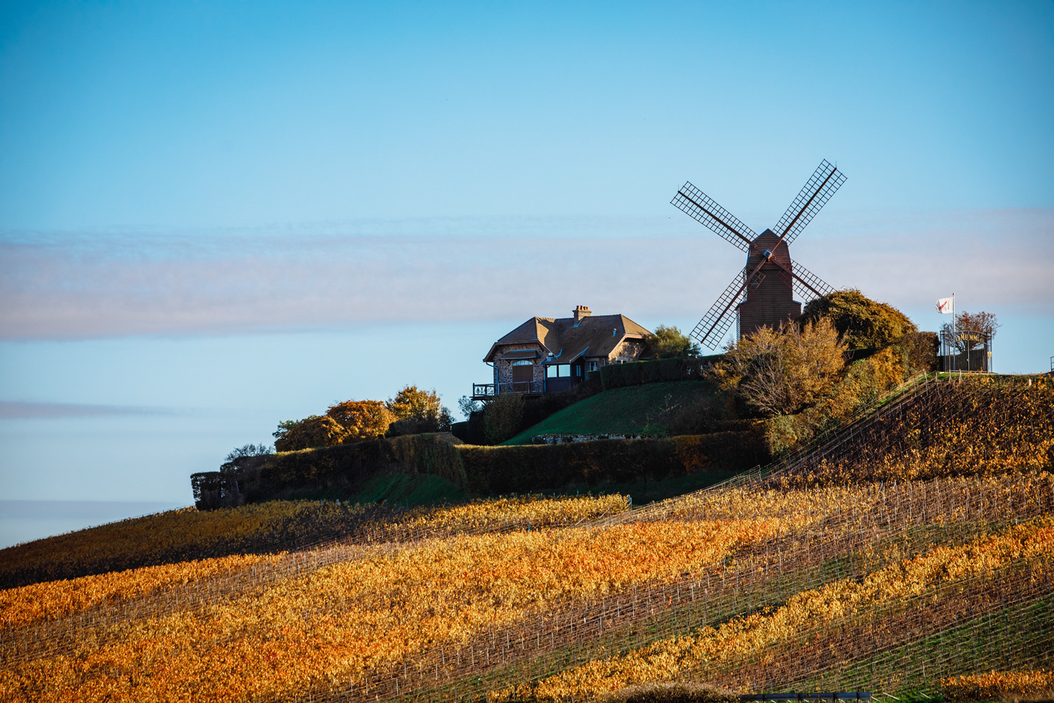 The Verzenay windmill has been owned by the G.H. Mumm champagne house since 1972. It is a listed historic monument. Built in 1820 on the Mont Bœuf (222 metres above sea level) to grind cereals, it stopped working in 1901. The great storm of 2013 destroyed three of its wings, even though they were firmly attached. Four new wings, 9 metres long and weighing 1,543 lbs (700 kilos), replaced them. All around, paths wind between the vineyards, sometimes paved, sometimes wild paths, which follow a portion of the Way of St. James for a few hundred metres.