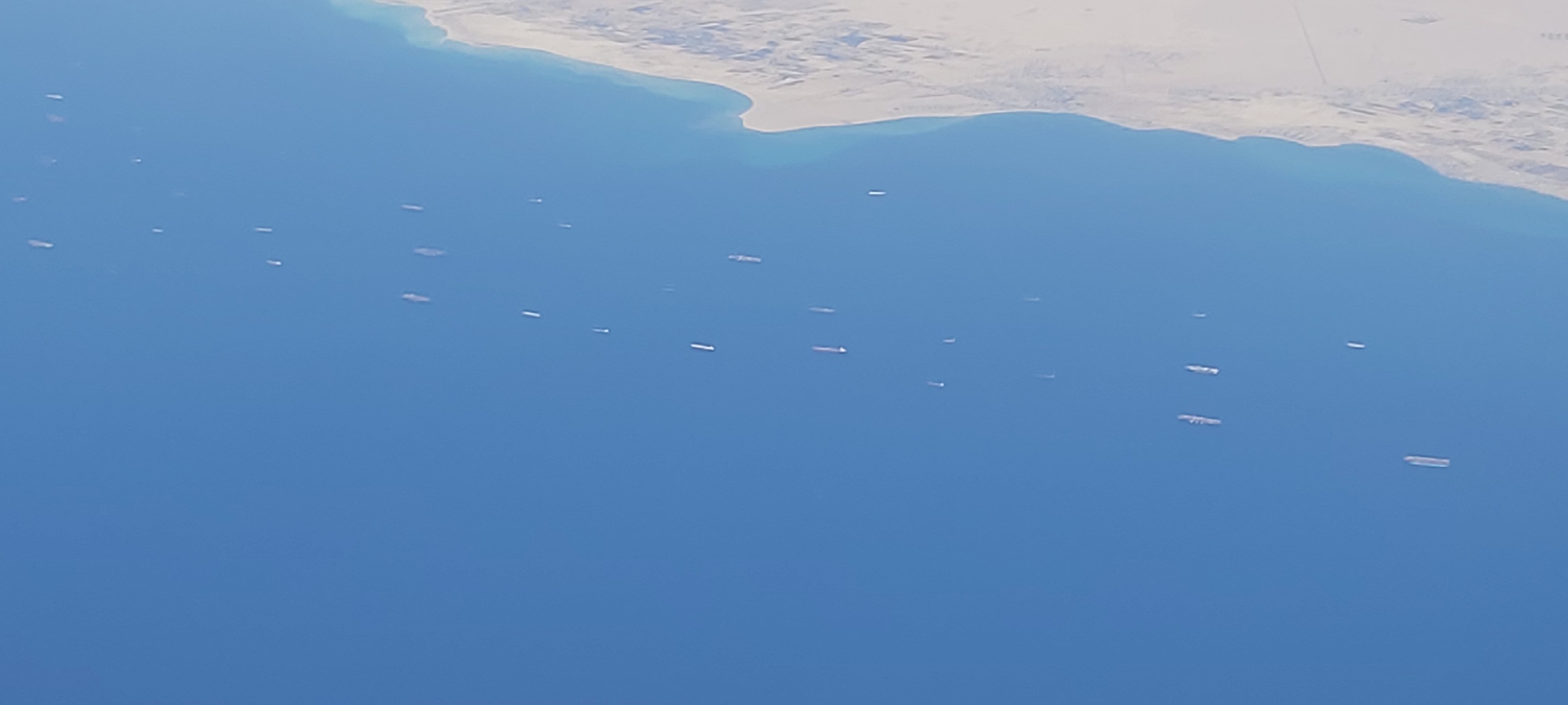 Que of ships in red sea
