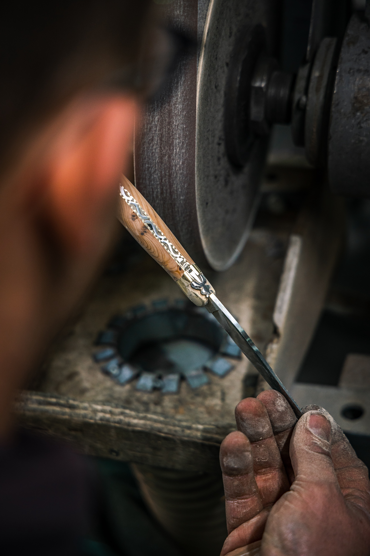The international reputation of the Laguiole knives has earned them the existence of many copies around the world. However, certain distinctive signs make it possible to recognize the original ones, crafted in the village itself, at the heart of the Aveyron department. The chiseled bee or fly, the brass or steel bolsters that protect the ends of the handle, and the guilloche. The latter is a carving formed of straight and wavy lines on the spring. A real goldsmith's work.