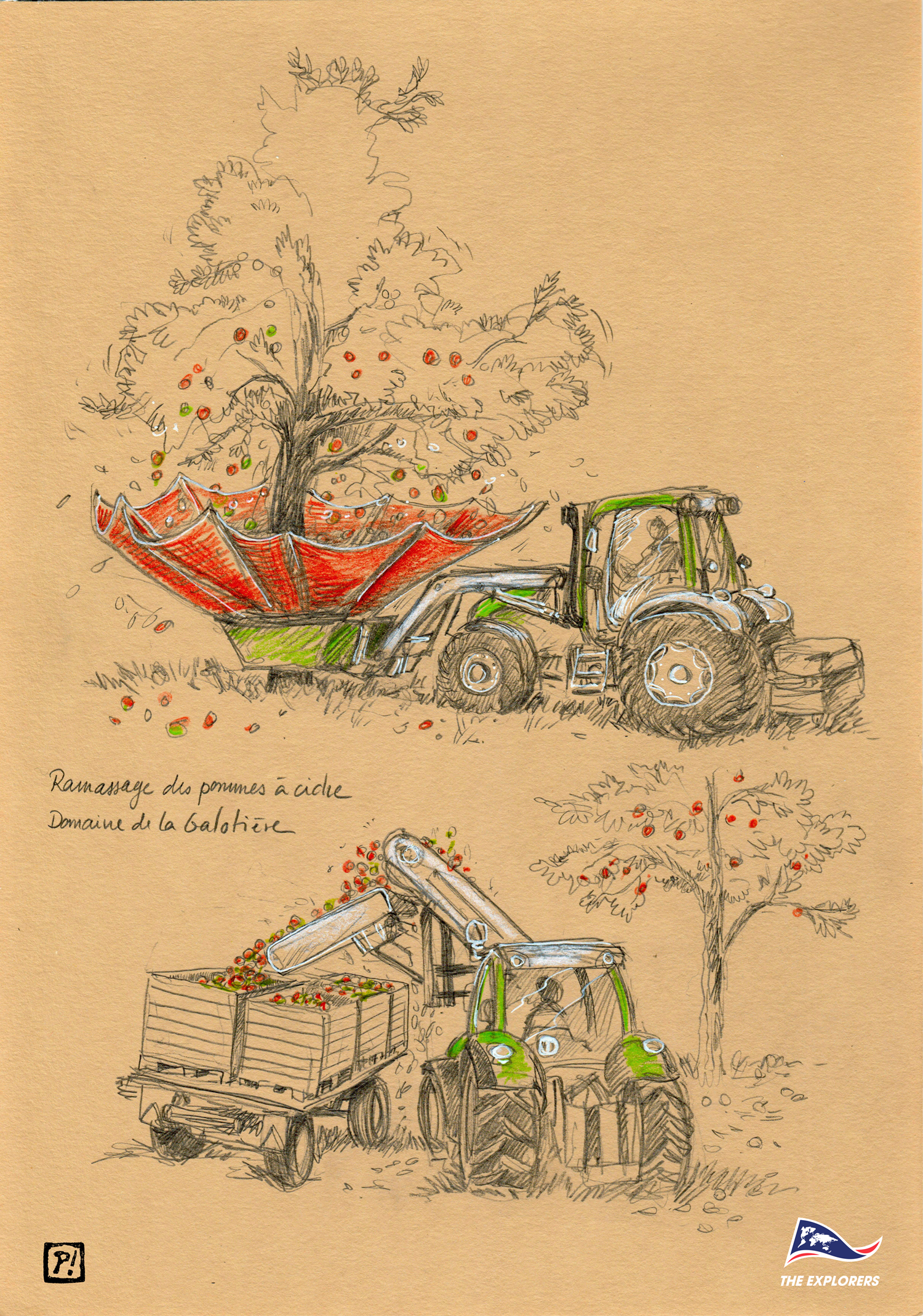 Ingénieux système pour la cueillette des pommes à cidre au Domaine de la Galotière en Normandie
