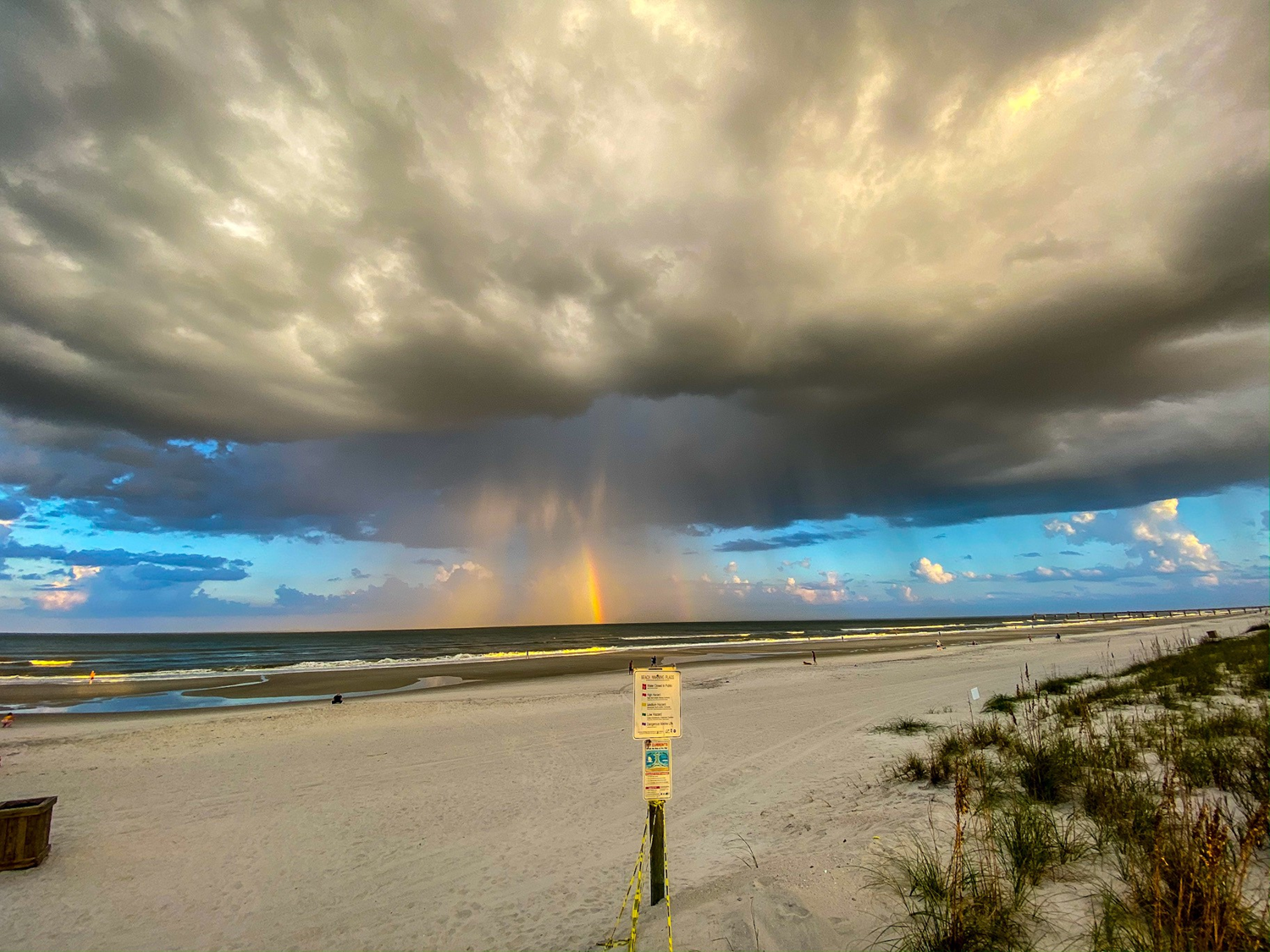 Very rare event of a storm that produced a double rainbow “bomb” in the middle of the storm! Caught this shot in Jacksonville Beach, FL.