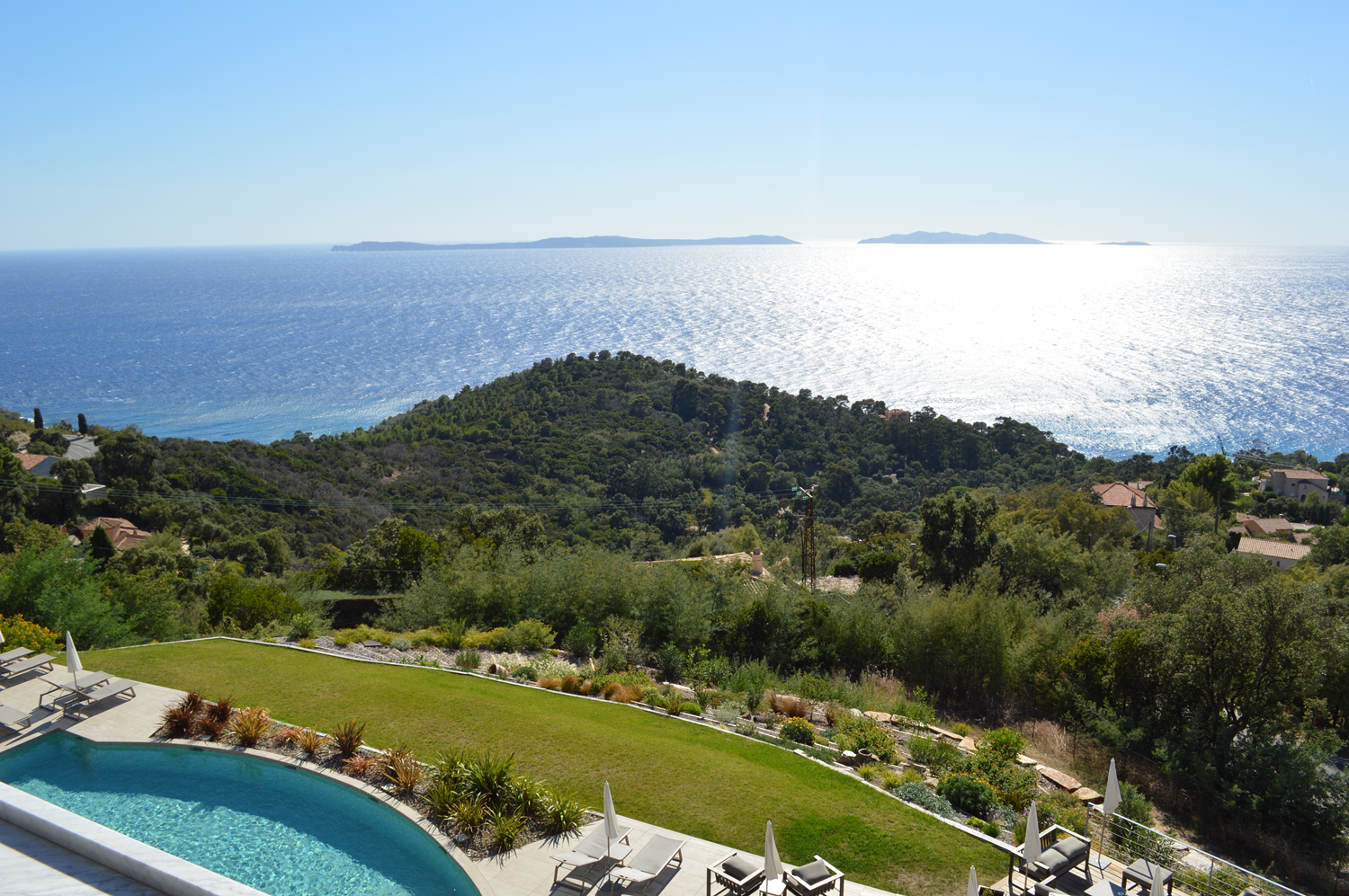 Vue imprenable sur l'île du Levant (à gauche) et la réserve naturelle de Port Cros (à droite).