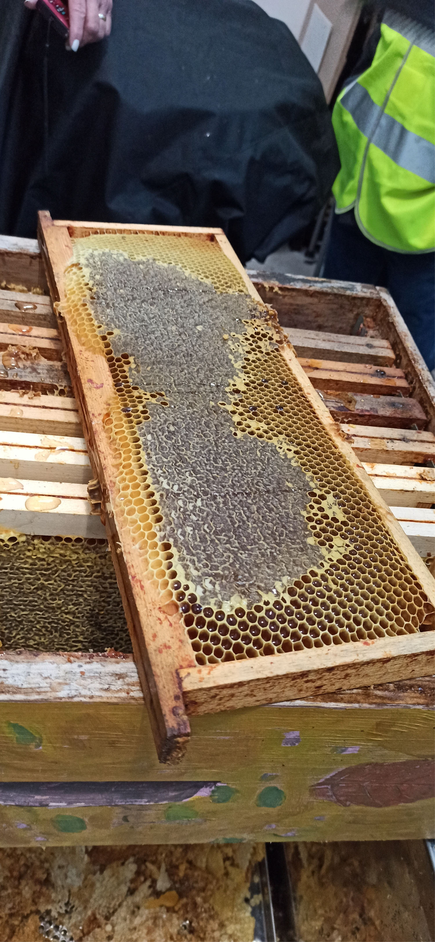 C'est là que les abeilles stockent le miel, le couvain et le pollen. C'est une forme géométrique hexagonale qui constitue les rayons de la ruche. Les parois sont extrêmement fines. Mais pour éviter que la cire ne s'effrite, le bord supérieur est plus épais.