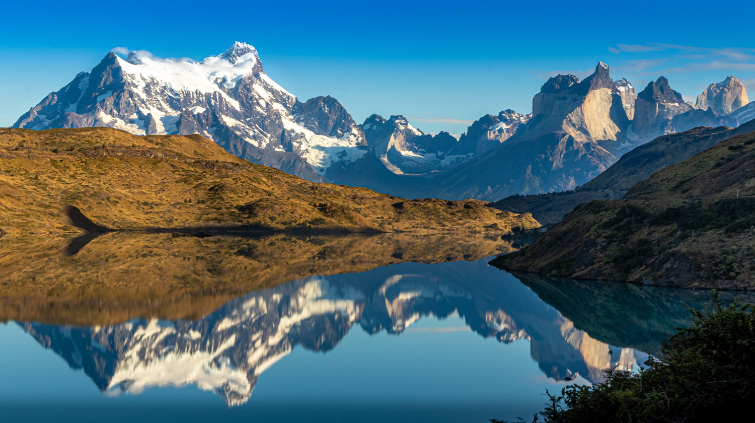 En route pour la fameuse radonnee los cuernos del Paine, au passage somptueux paysages, avec des jeux de reflets et de lumieère.