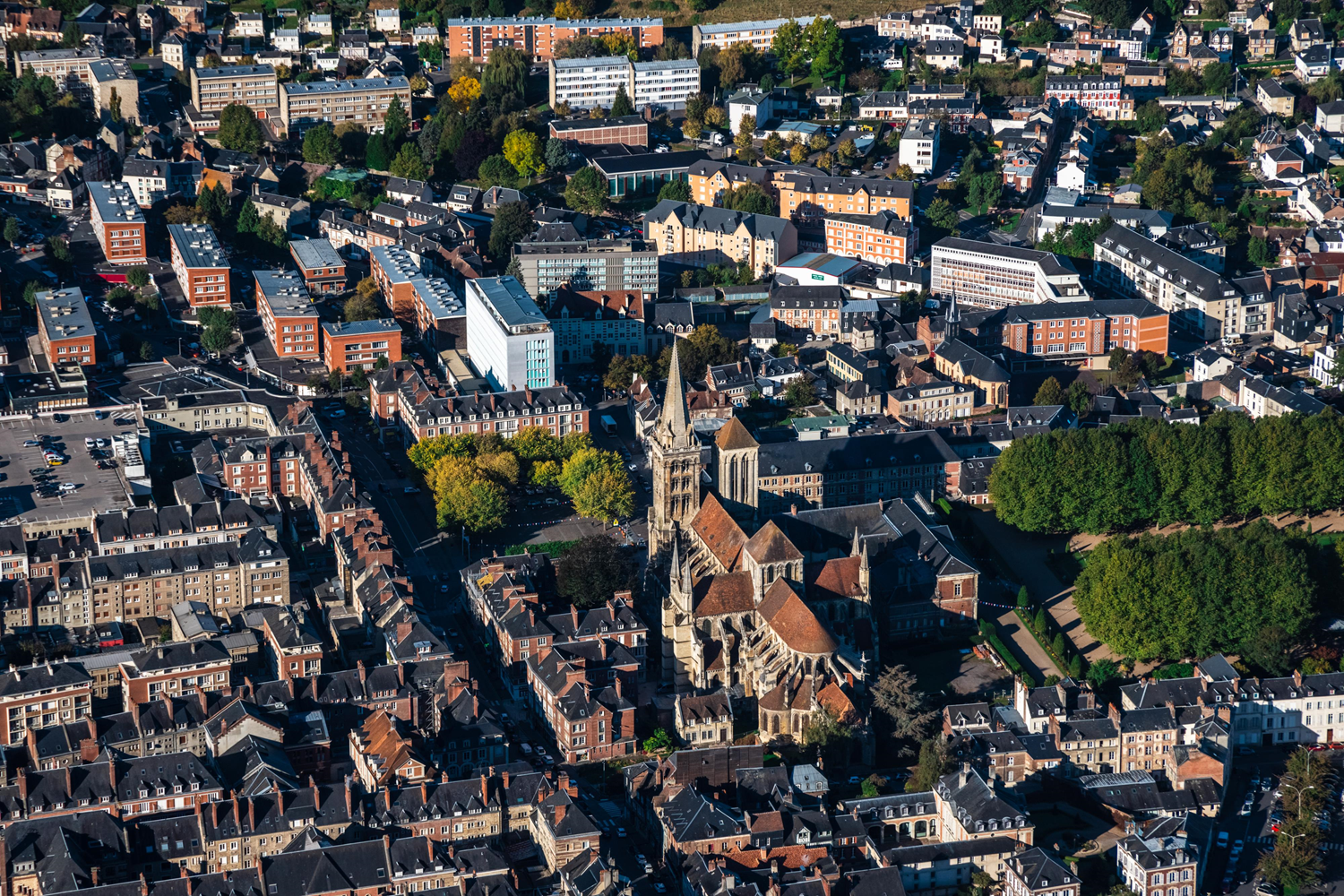 Saint-Pierre Cathedral in Lisieux is the only survivor of the bombardments of World War II. It is believed that it was built between 1160 and 1230 by Bishop Arnoul after he returned from a crusade with King Louis VII. From 1432 to 1442, the cathedral was managed by Bishop Cauchon, notorious for having sentenced Joan of Arc to the stake in 1431. Thérèse of Lisieux later came to pray there during her youth. Saint-Pierre Cathedral is one of the first Gothic buildings in Normandy.