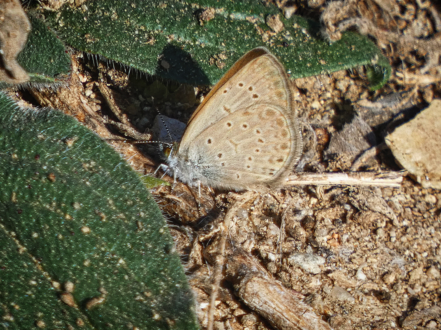 Reverso de las alas cerradas de la mariposa Violetilla (Zizeeria knysna)