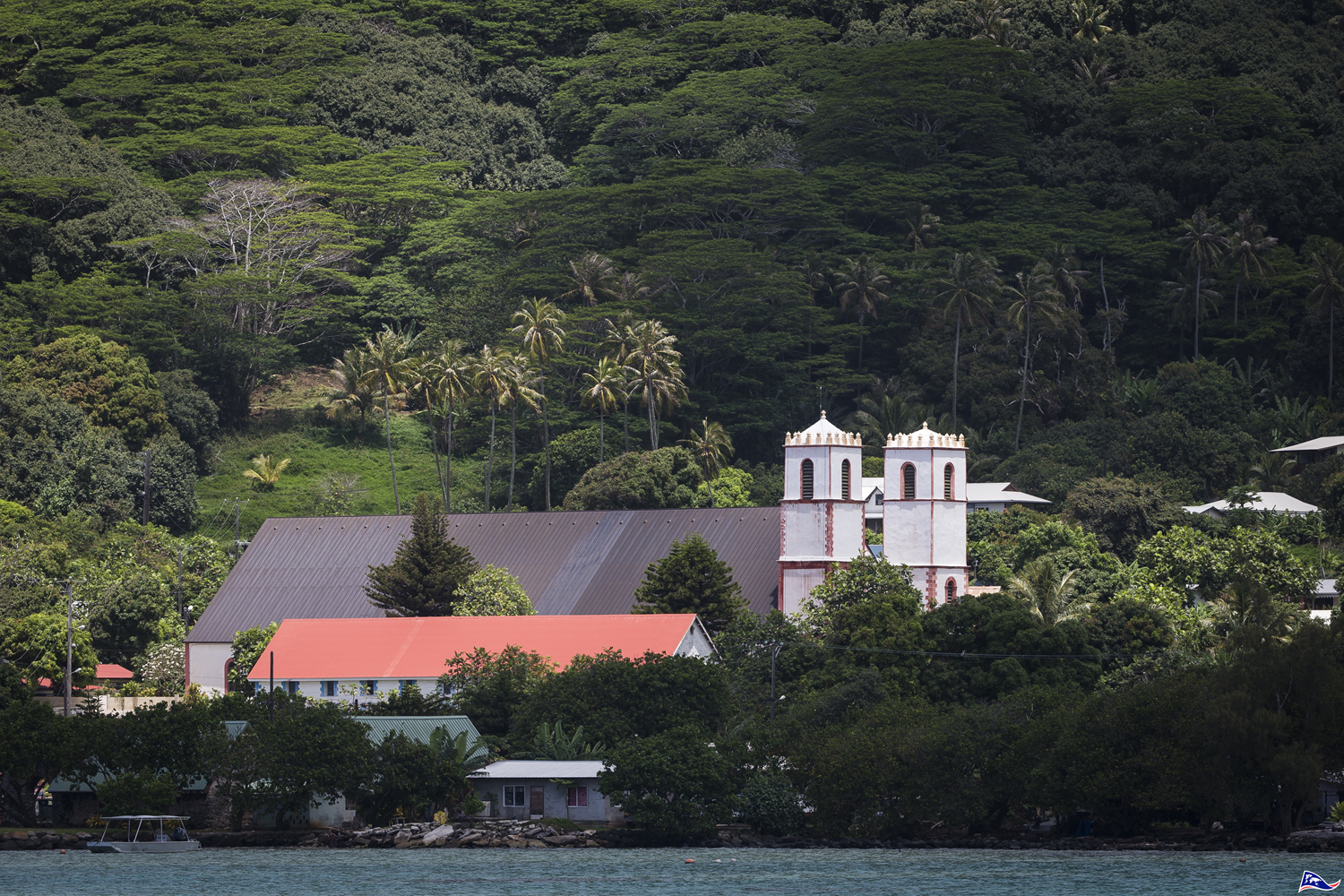 Located on the island of Mangareva, Rikitea is the capital of Gambier Islands, French Polynesia. Cradle of Polynesian catholicism, the village is home to the Cathedral Saint-Michel which can welcome 1,200 people. It was erected in coral blocks in 1841 by Honoré Laval. Located at the foot of Mount Duff (1446ft/441m), the village is built around the unique street that runs along the lagoon.
