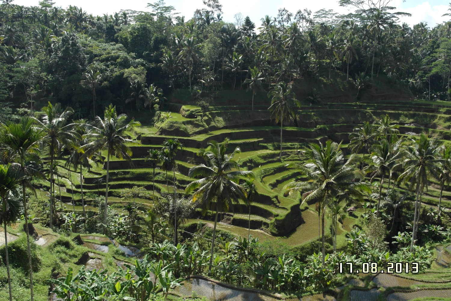 La vue magnifique en hauteur des rizières en plateau à Bali sur la route du village d'Hamed