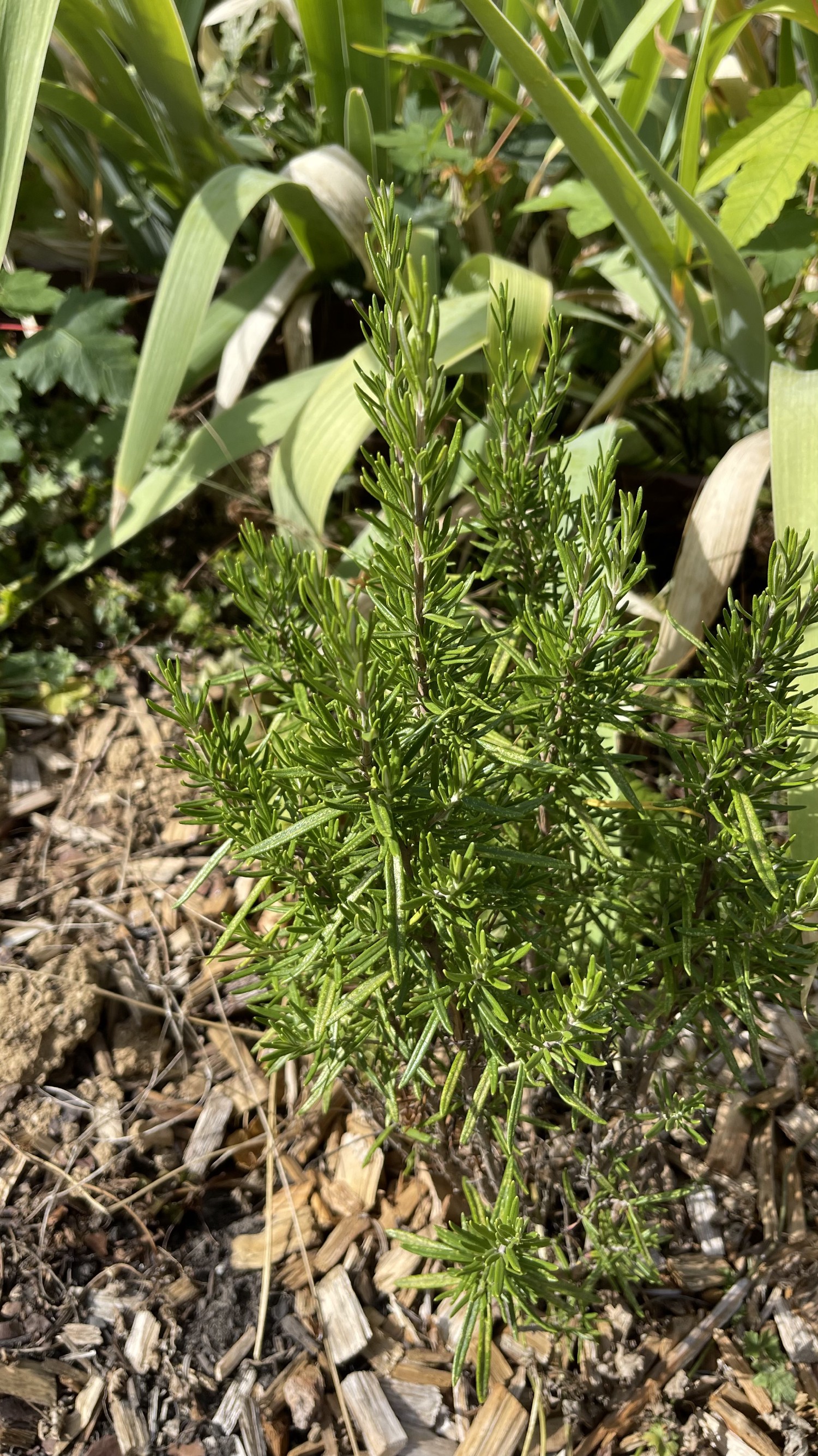 Le romarin (Rosmarinus officinalis) est un arbrisseau vivace qui peut pousser à l'état sauvage dans la garrigue et le maquis méditerranéens, même s'il résiste à -12°C environ. Il s'installe au jardin d'aromatique mais également en rocaille, en haie ou pour habiller un talus, avec sa forme touffue qui peut être étalée ou érigée selon les variétés. Ses tiges ligneuses sont densément couvertes de feuilles rappelant des aiguilles de pin, persistantes, vertes sur le dessus et blanchâtres en dessous, linéaires et coriaces mesurant 2 à 4 cm de long.