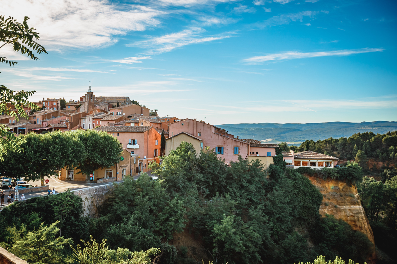 Famous for the richness of its ochres and its quarries exploited from the end of the 18th century to the 1930s, Roussillon is located in the heart of the northern Luberon valley, between the 'little' Luberon and the 'Monts de Vaucluse'. The town is bordered by two main streams, the Imergue to the north and the Urbane to the east, which participated in the creation of its particular relief.