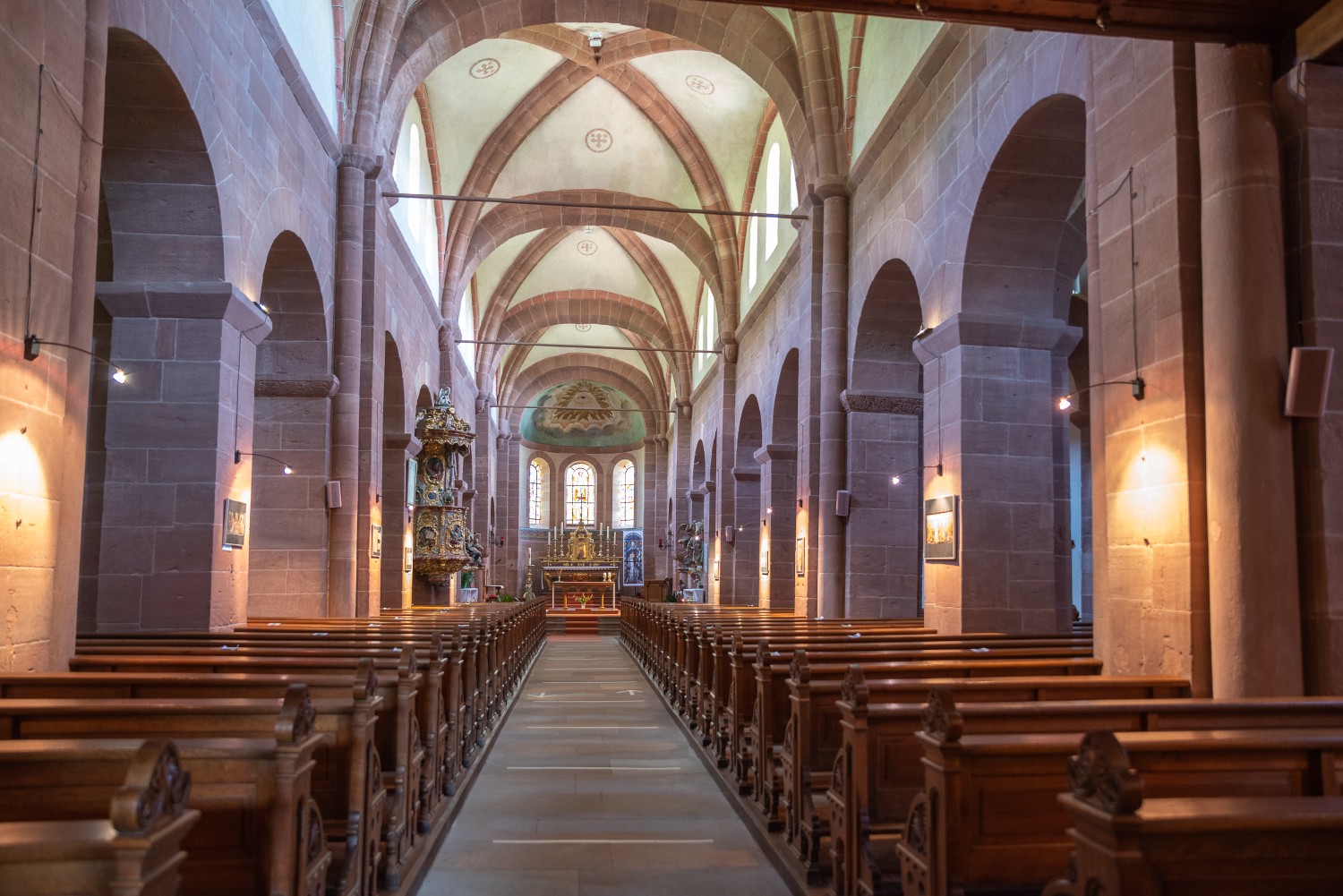 La nef et le choeur de l'église abbatiale Saint-Jean-Baptiste.